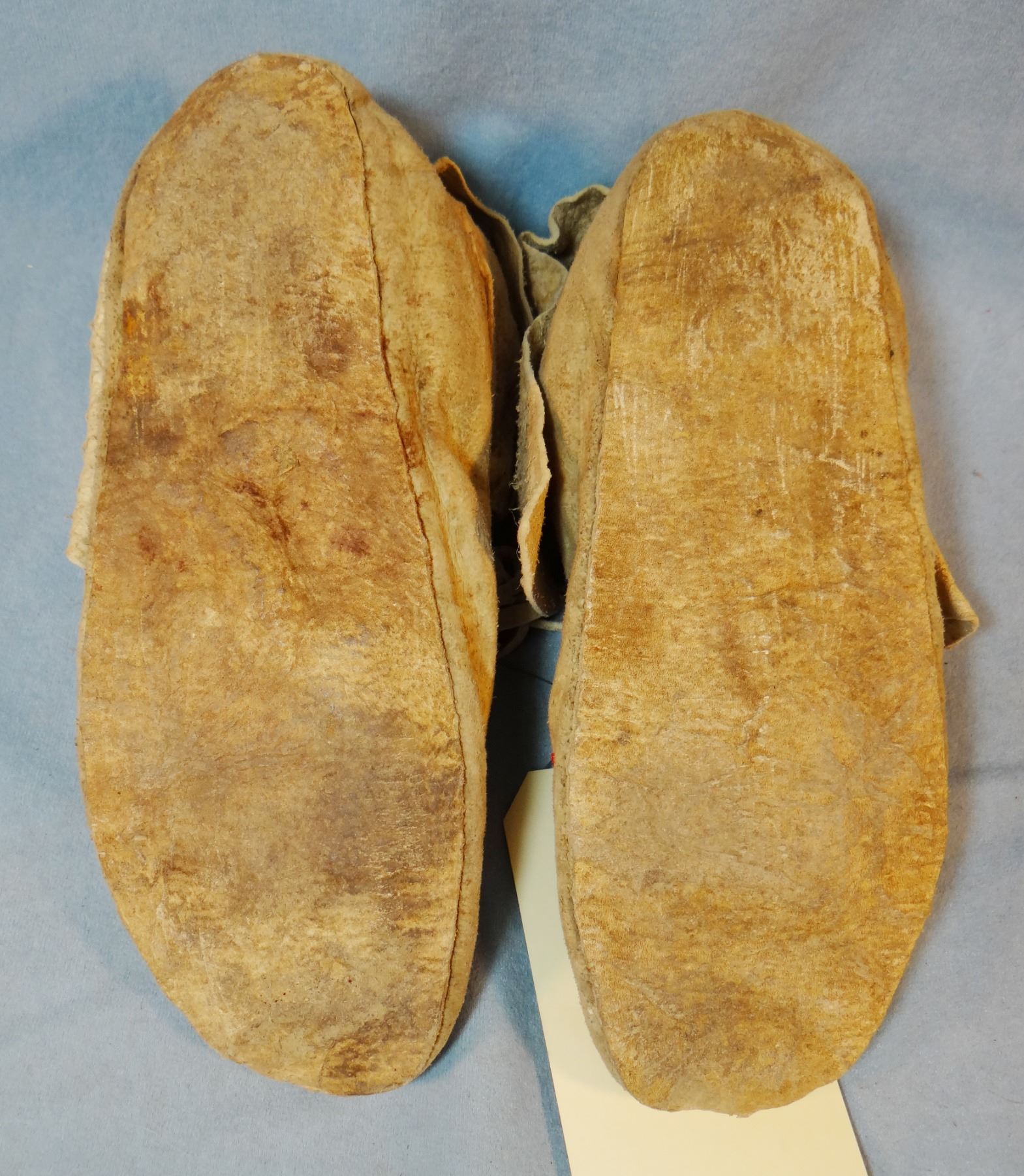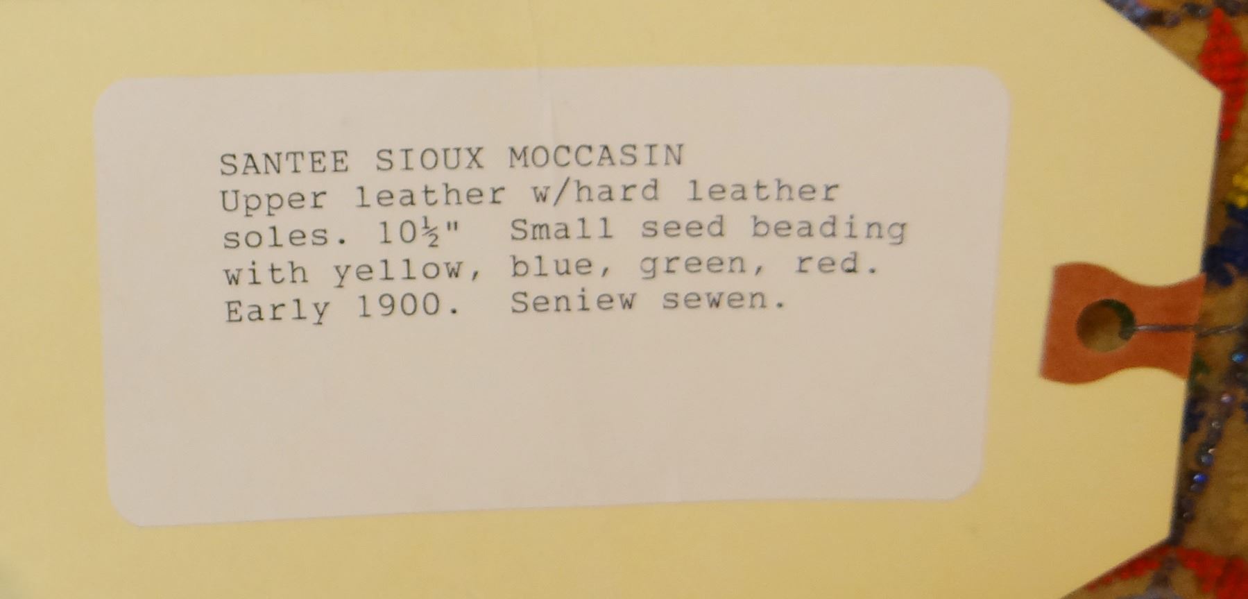 Santee Sioux beaded moccasins, 10", early 1900's, sinew sewn