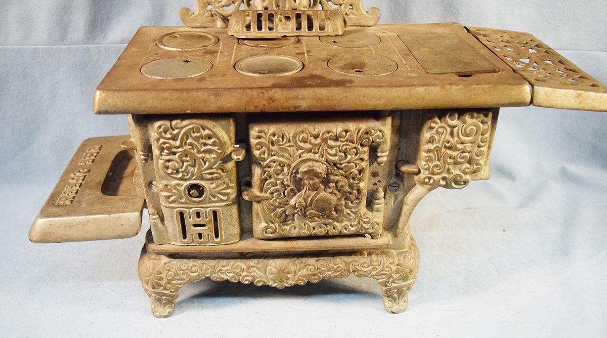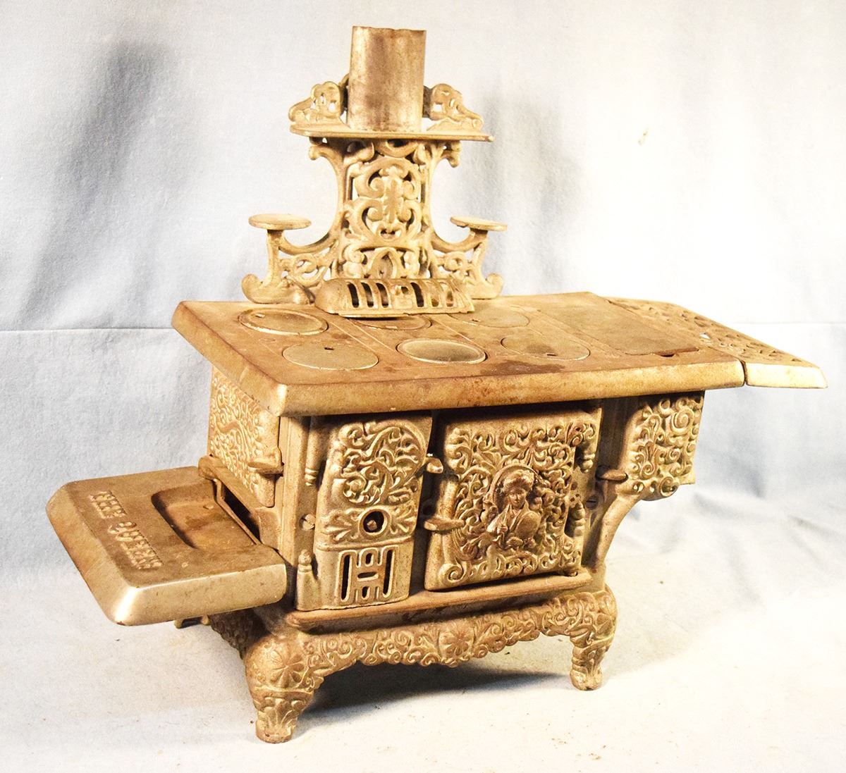 Queen cast iron salesman sample cook range, ca 1890's, 16" x 19" 7.5", complete