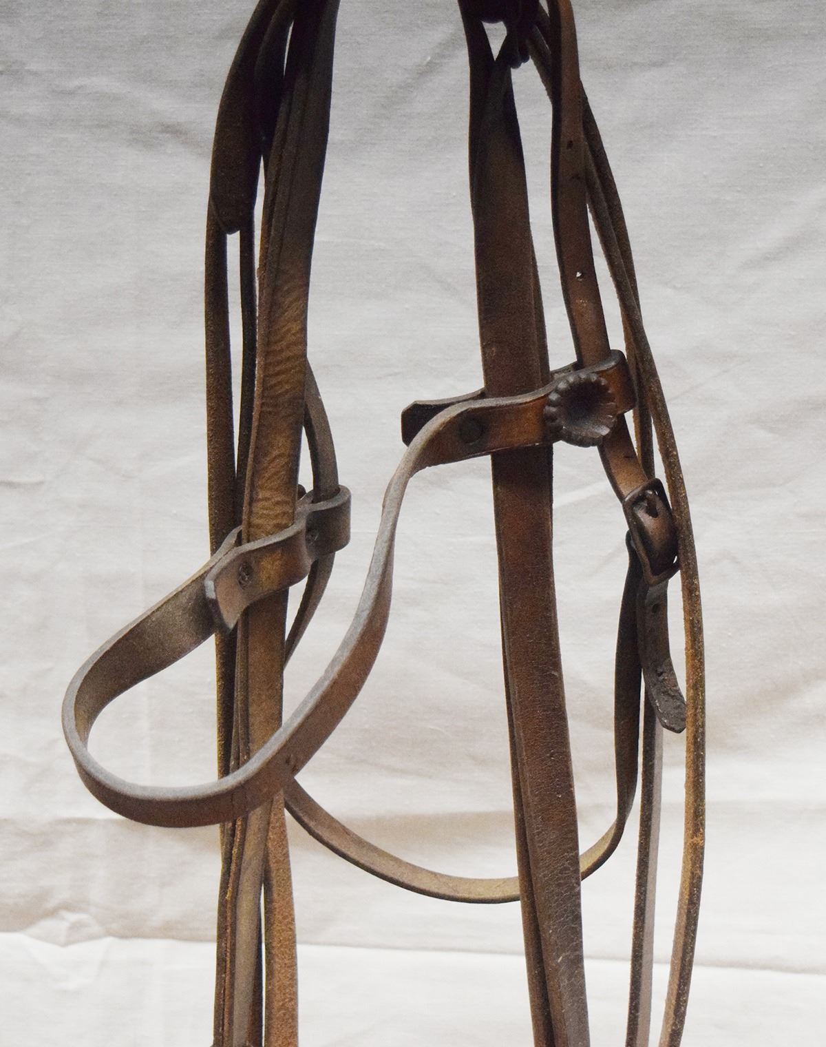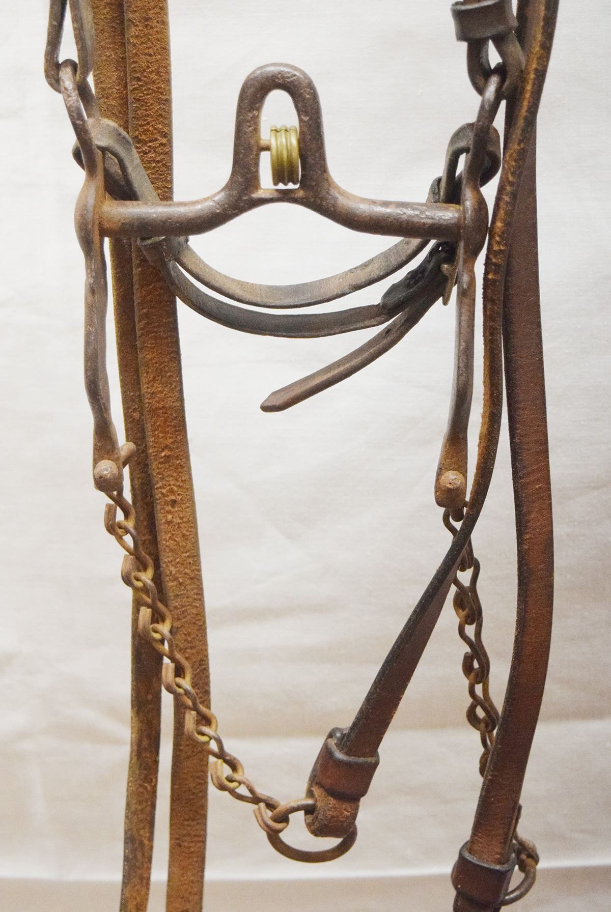 August Buermann etched iron ladies leg iron bit in headstall