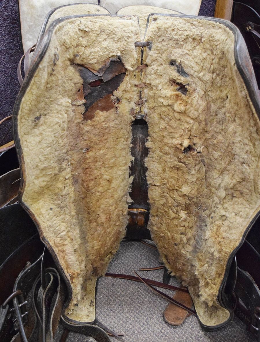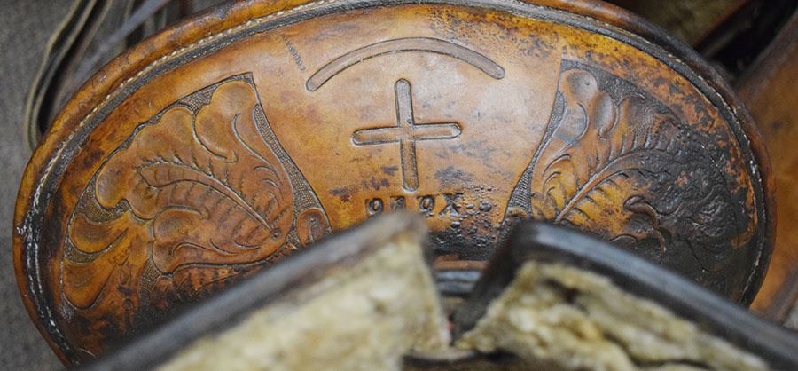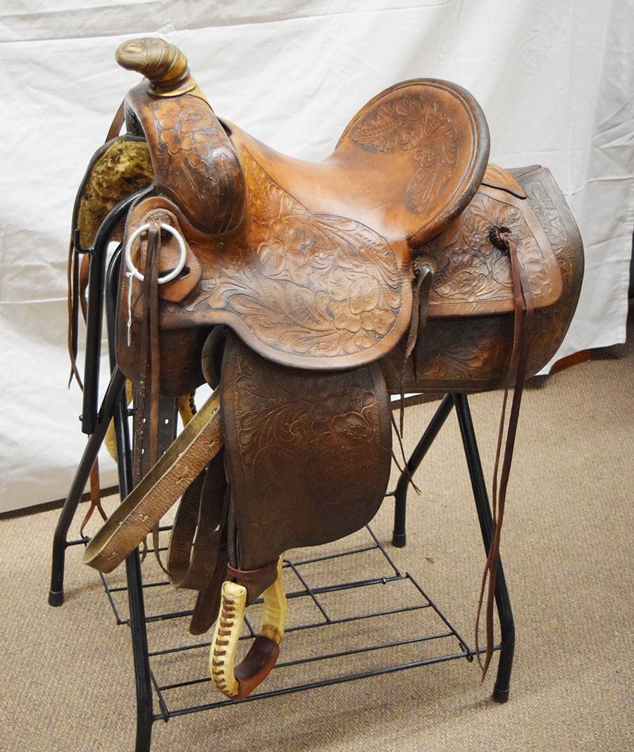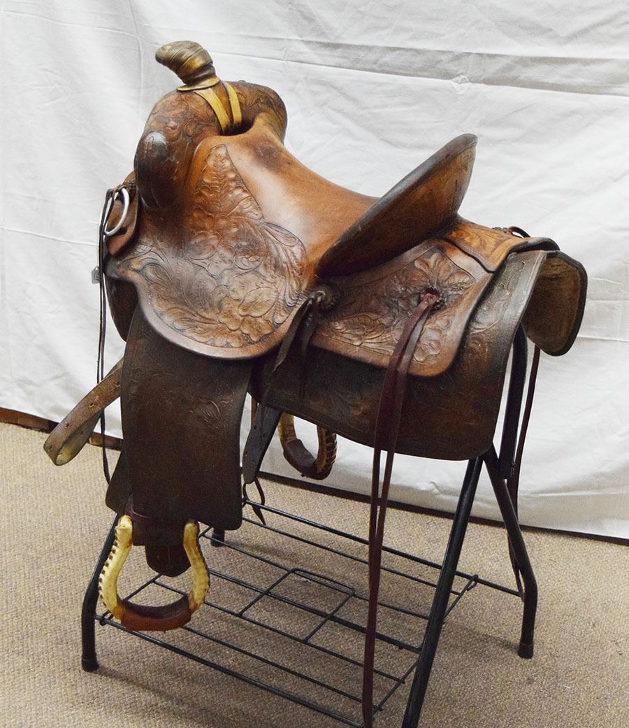 Buck & Knapp, Helena, MT, 14" western saddle, square skirt, flower tooled, single rigged, oxbows, fleece is rough