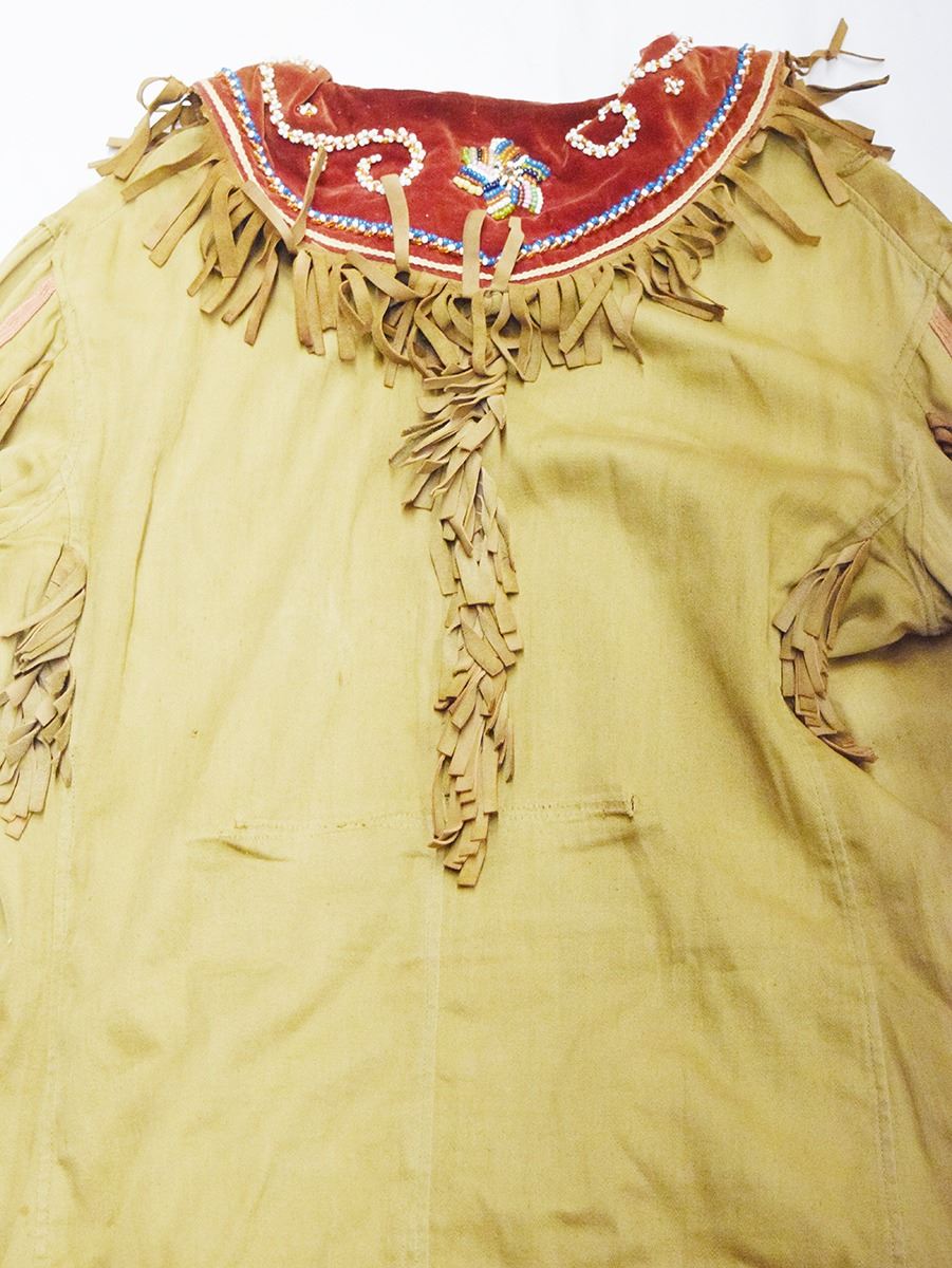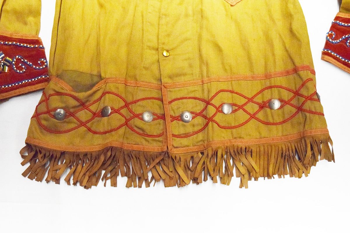 Authentic Buffalo Bill Cody Wild West Show costume, Anne Stavrou pants and jacket, trunk containing dress was found in basement of a bank in Cincinatti, OH. Originally part of the Jerry & Vangie Lee collection. Sold to Gary Jacobson, Bridger, MT