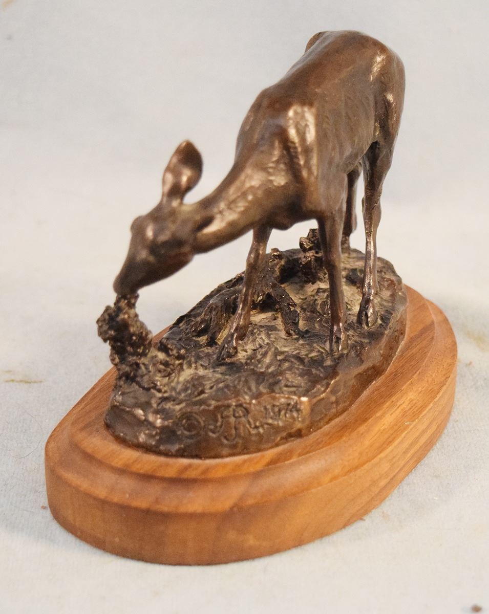 Richardson, A. J., Great Falls, MT, bronze, Deer, 3.5" x 4.5" x 3", wood base