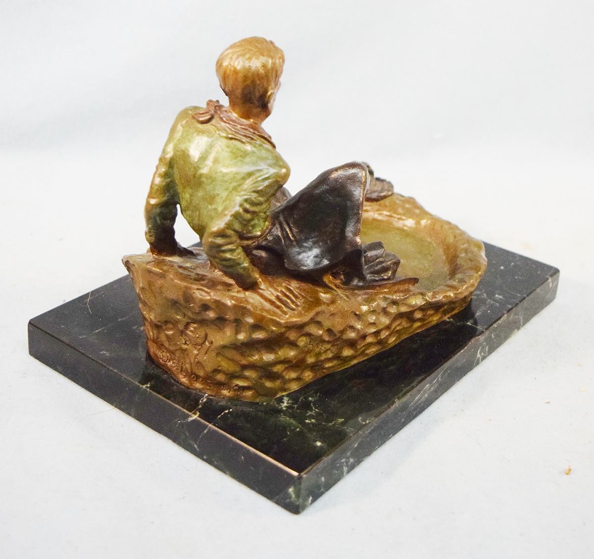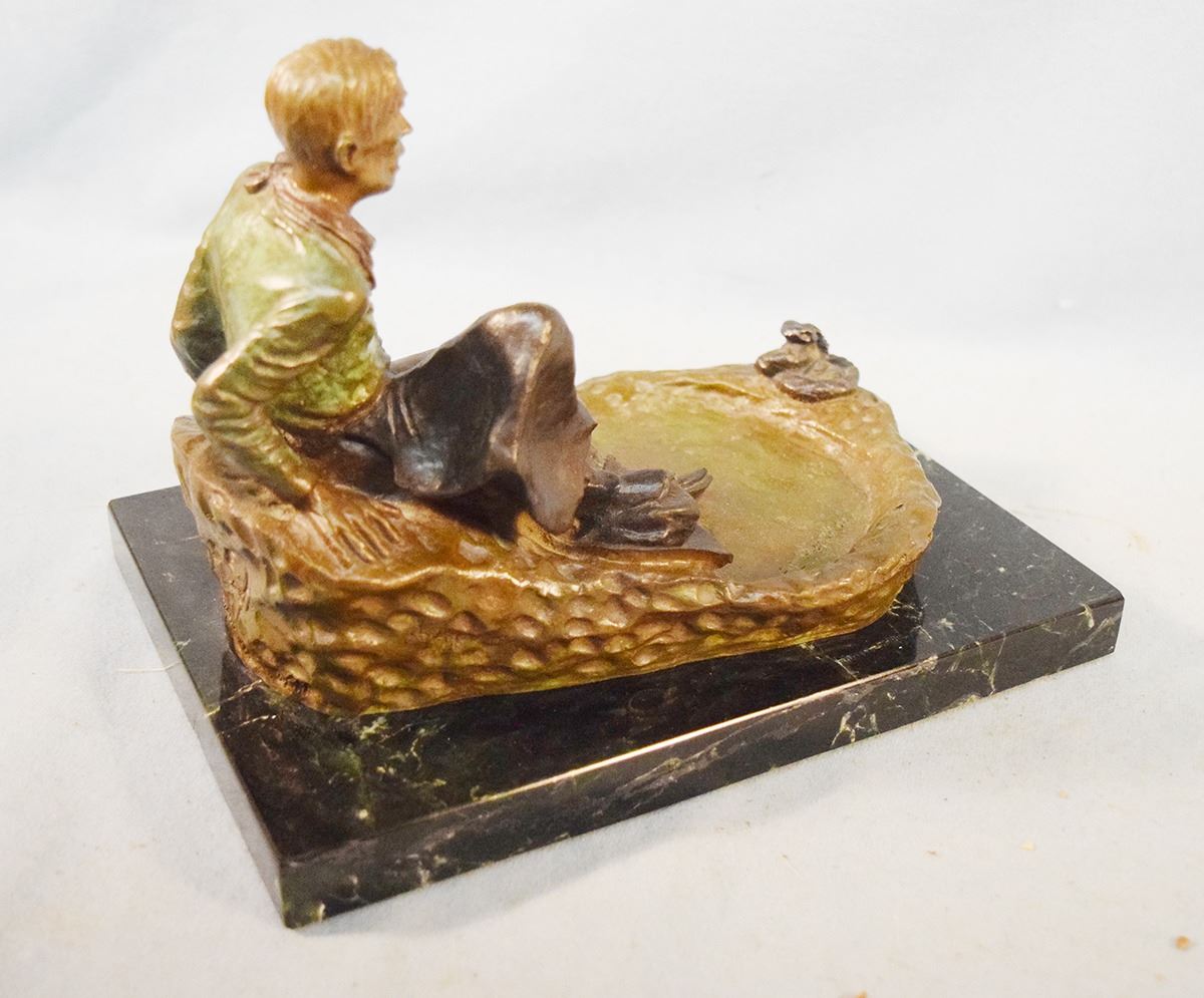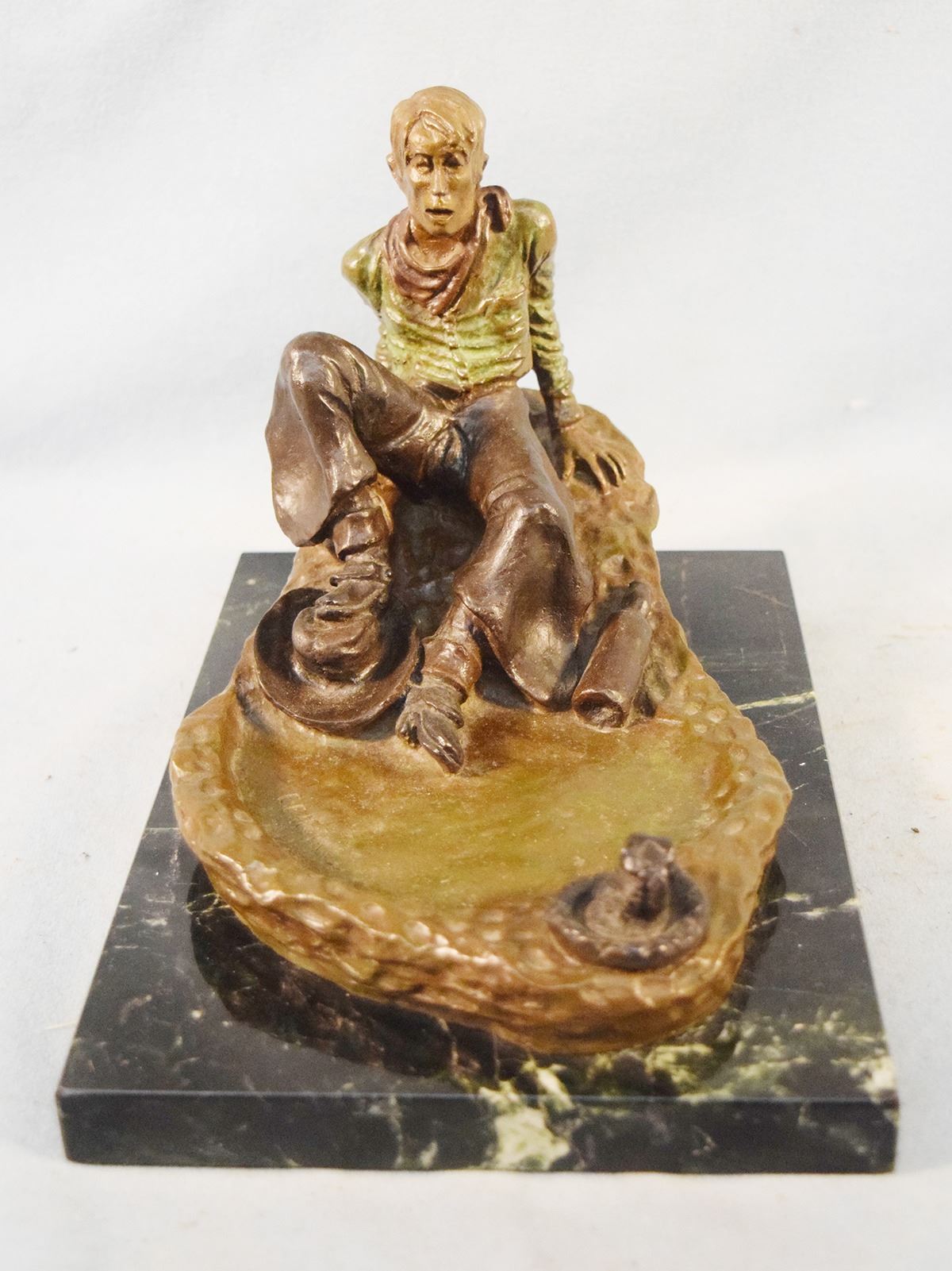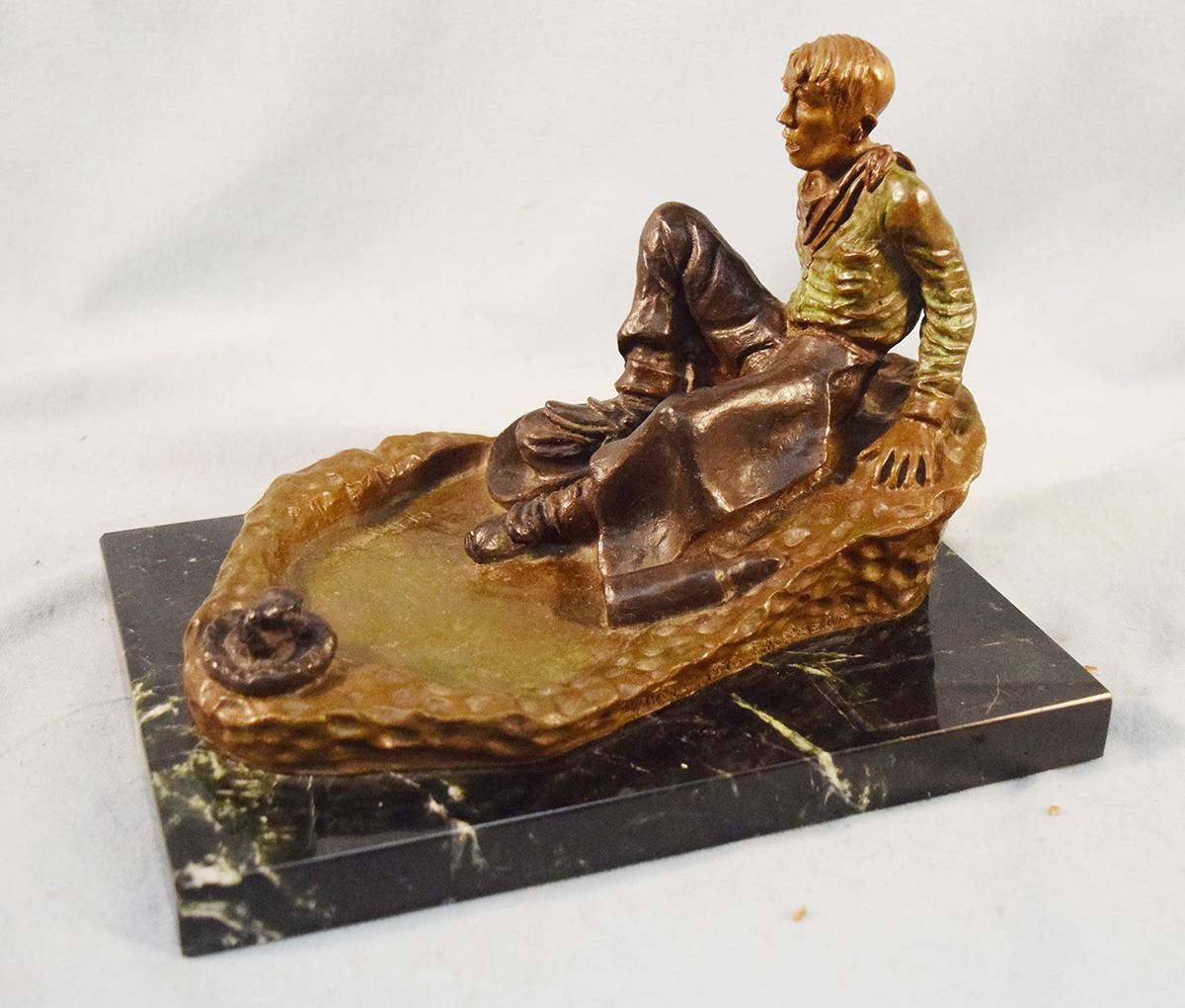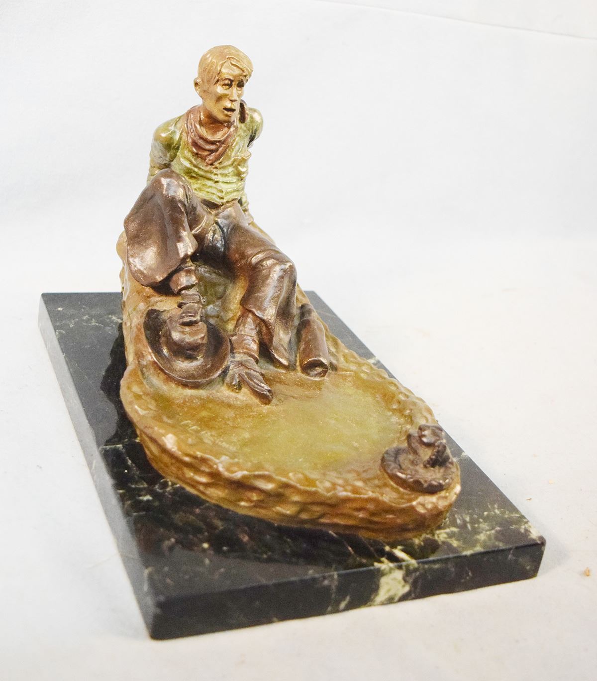 Heikka, Earle, bronze, The Hangover, #16/36, 6" x 9" x 6", marble base, 1939 gift from Heikka to E. H. Hoy, cast by Classic Bronze. This is the only "self sculpture" Heikka did.