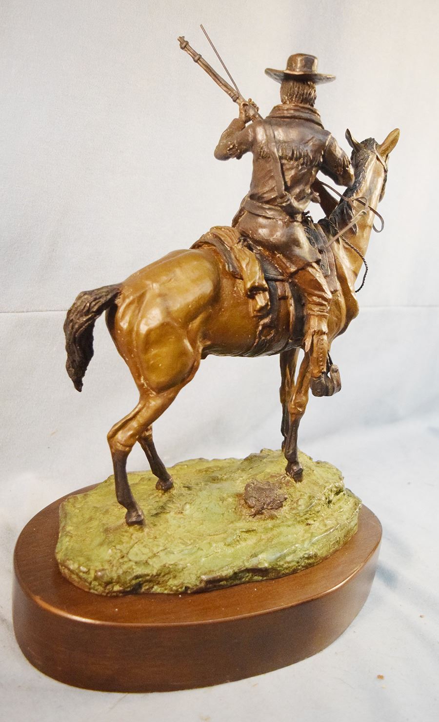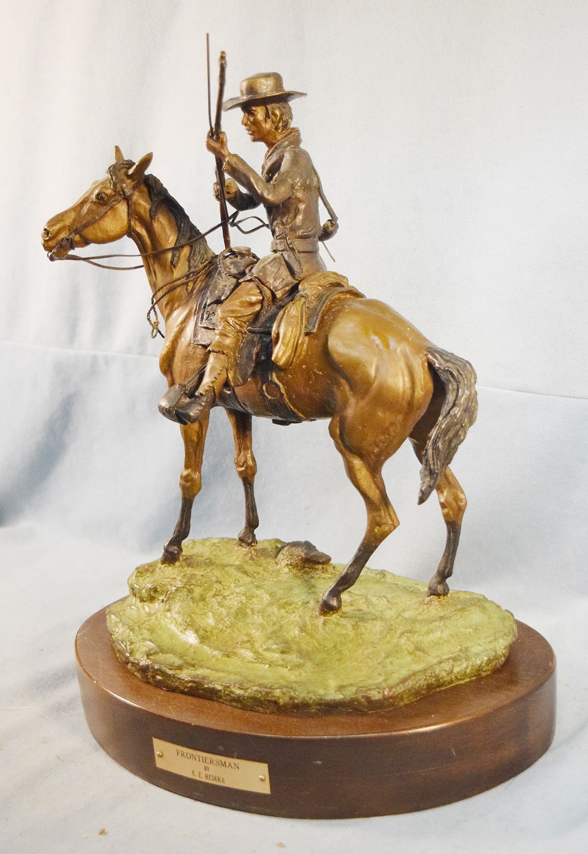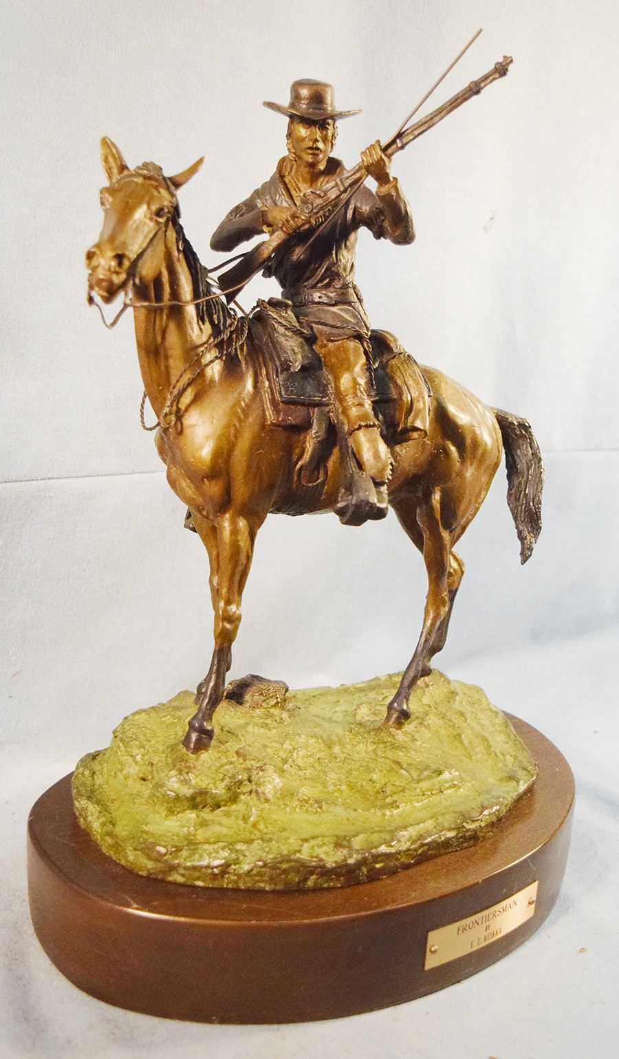 Heikka, Earl, bronze, The Frontiersman, #21/36, 14" x 11" x 7", wood base. In the 1930's Gerald Robinson acquired the model from Heikka. Robinson gifted the bronze to the C. M. Russell Museum and then it was cast by Classic Bronze.