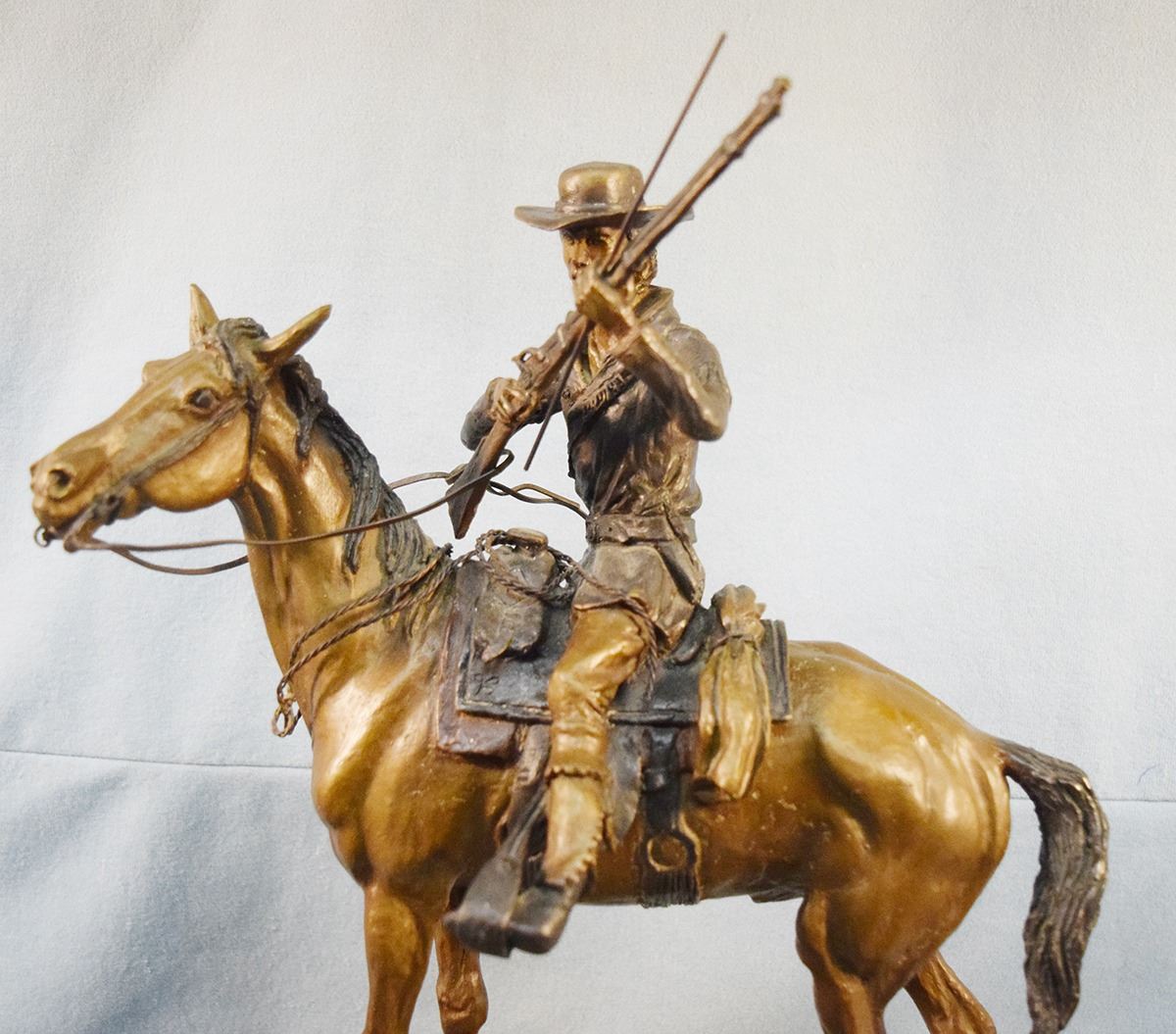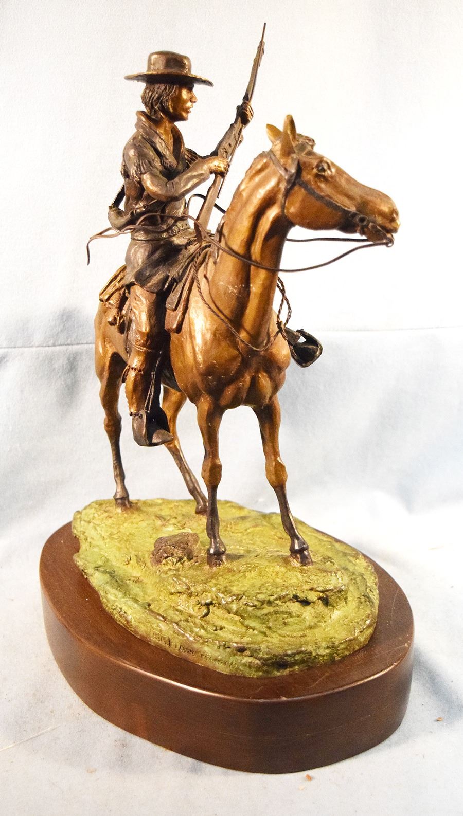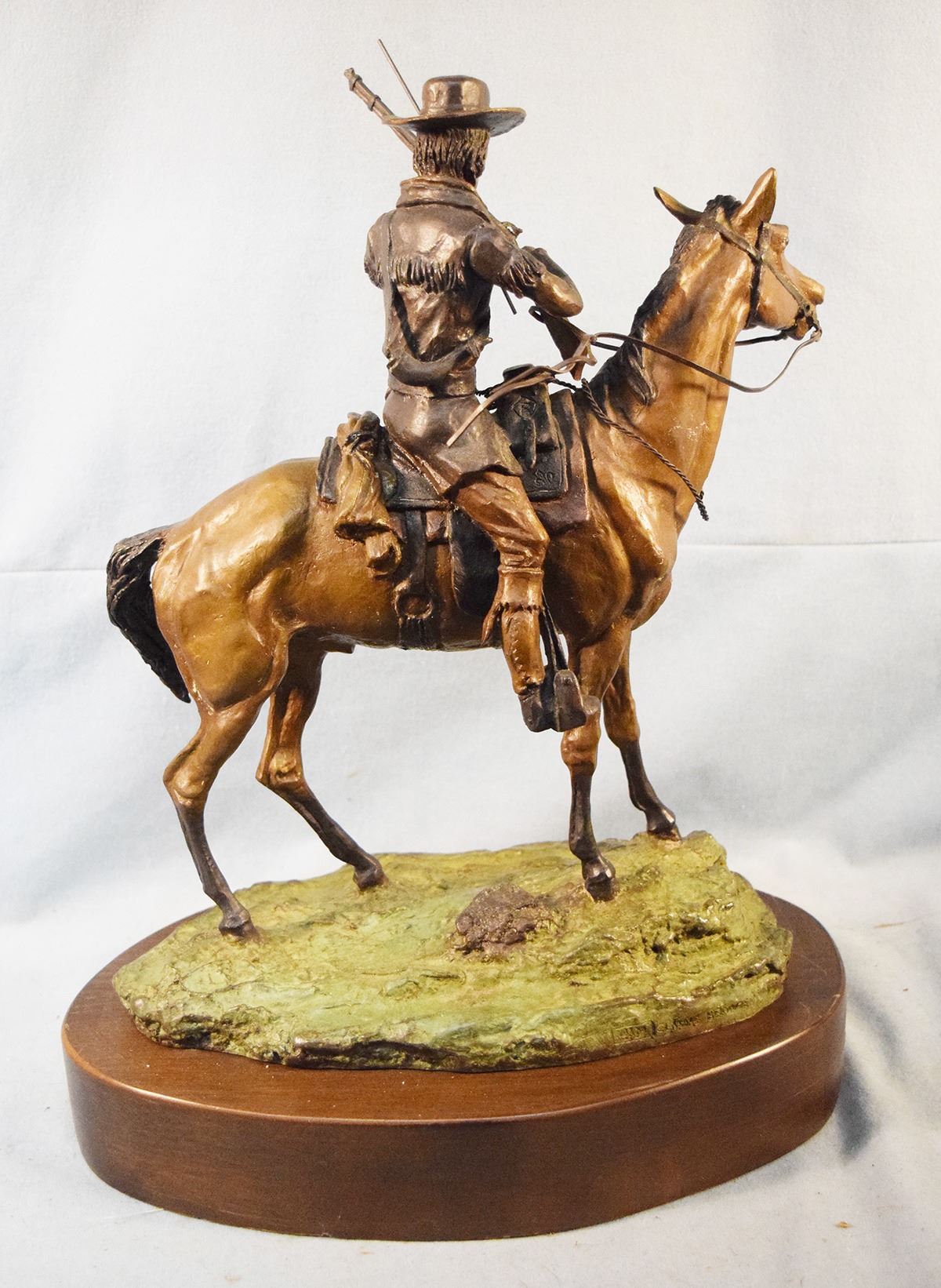 Heikka, Earl, bronze, The Frontiersman, #21/36, 14" x 11" x 7", wood base. In the 1930's Gerald Robinson acquired the model from Heikka. Robinson gifted the bronze to the C. M. Russell Museum and then it was cast by Classic Bronze.
