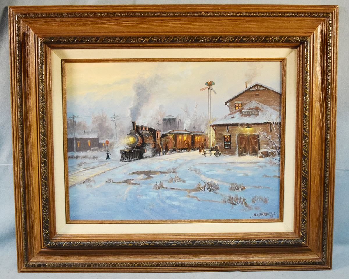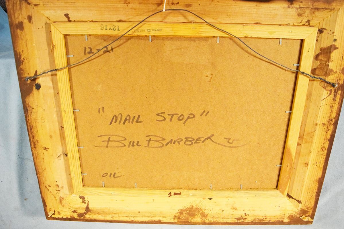 Barber, Bill, original oil on board, Mail Stop, 12" x 16", framed, signed lower right