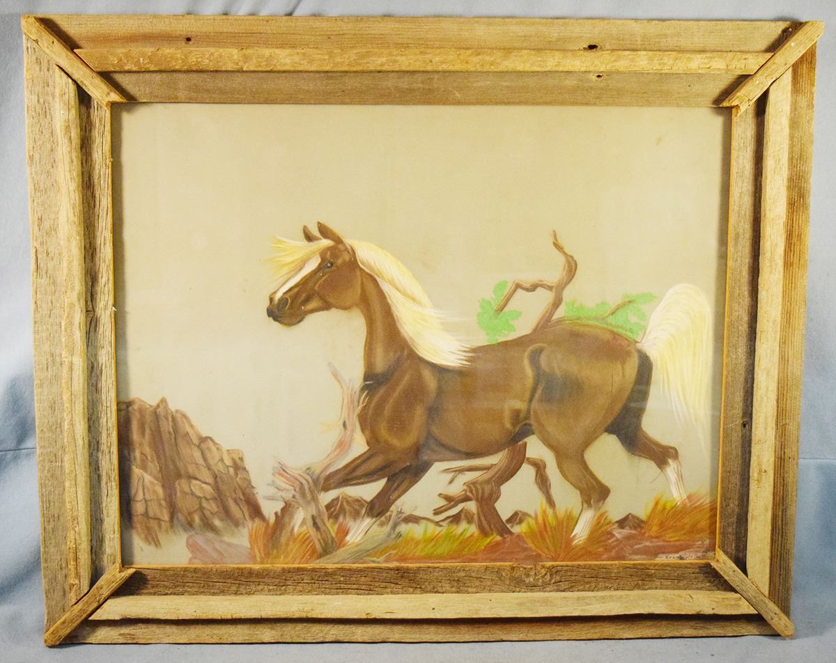 Cuts the Rope, Frank, original pastel, The Grey, 19" x 23", barn wood frame, signed lower right