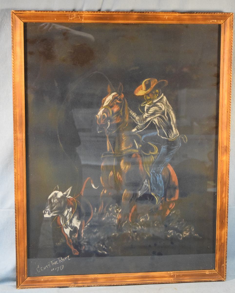 Cuts the Rope, Clarance, original pastel, The Calf Roper, 26" x 20", framed, signed lower left