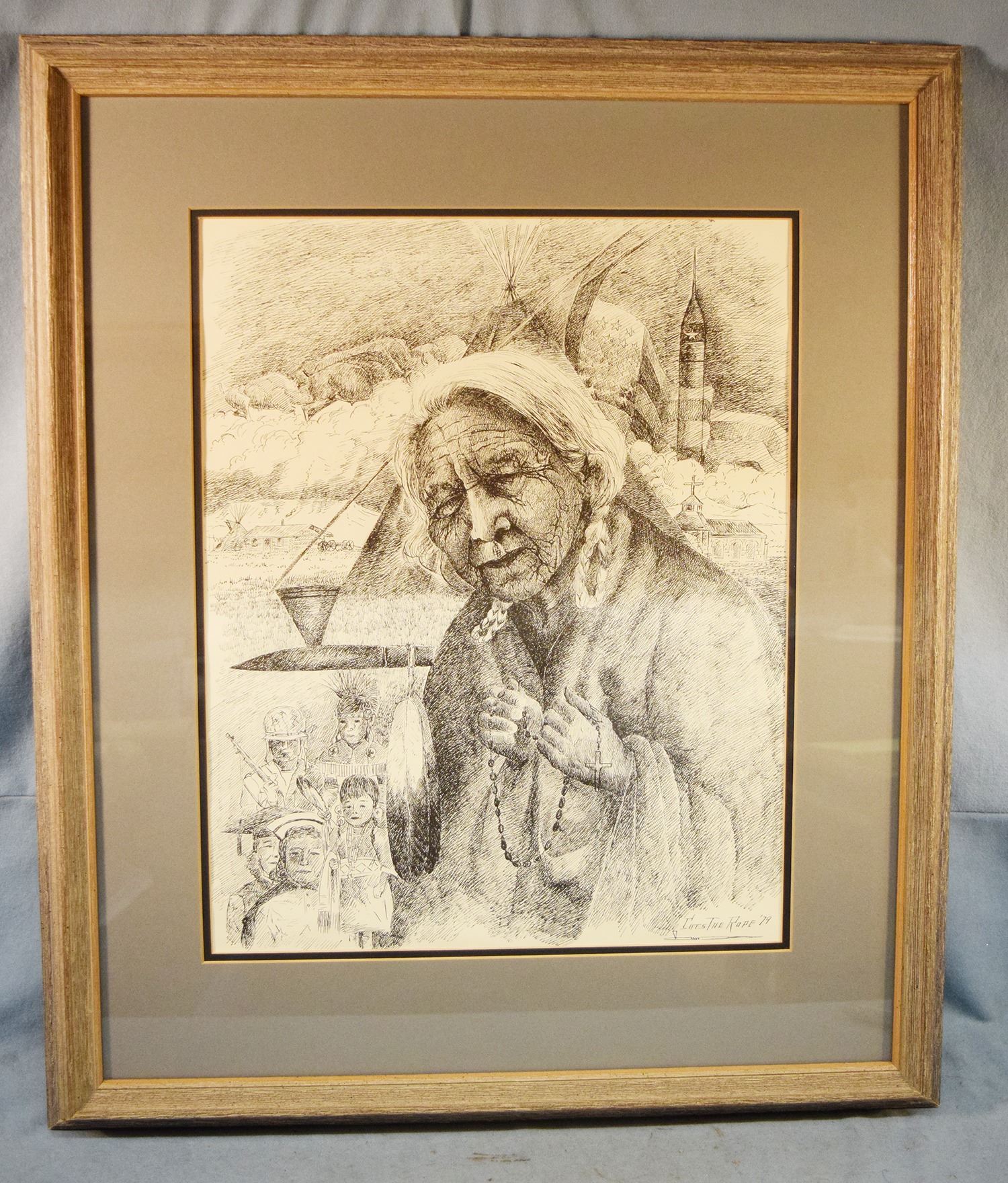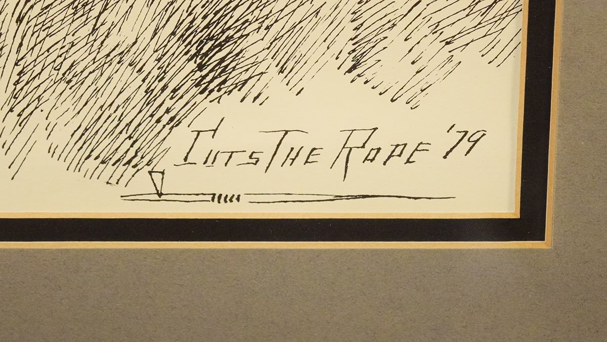 Cuts The Rope, Clarence, original pen & ink, Grandmother's Vision, 1979, 20" x 16", framed, signed lower right