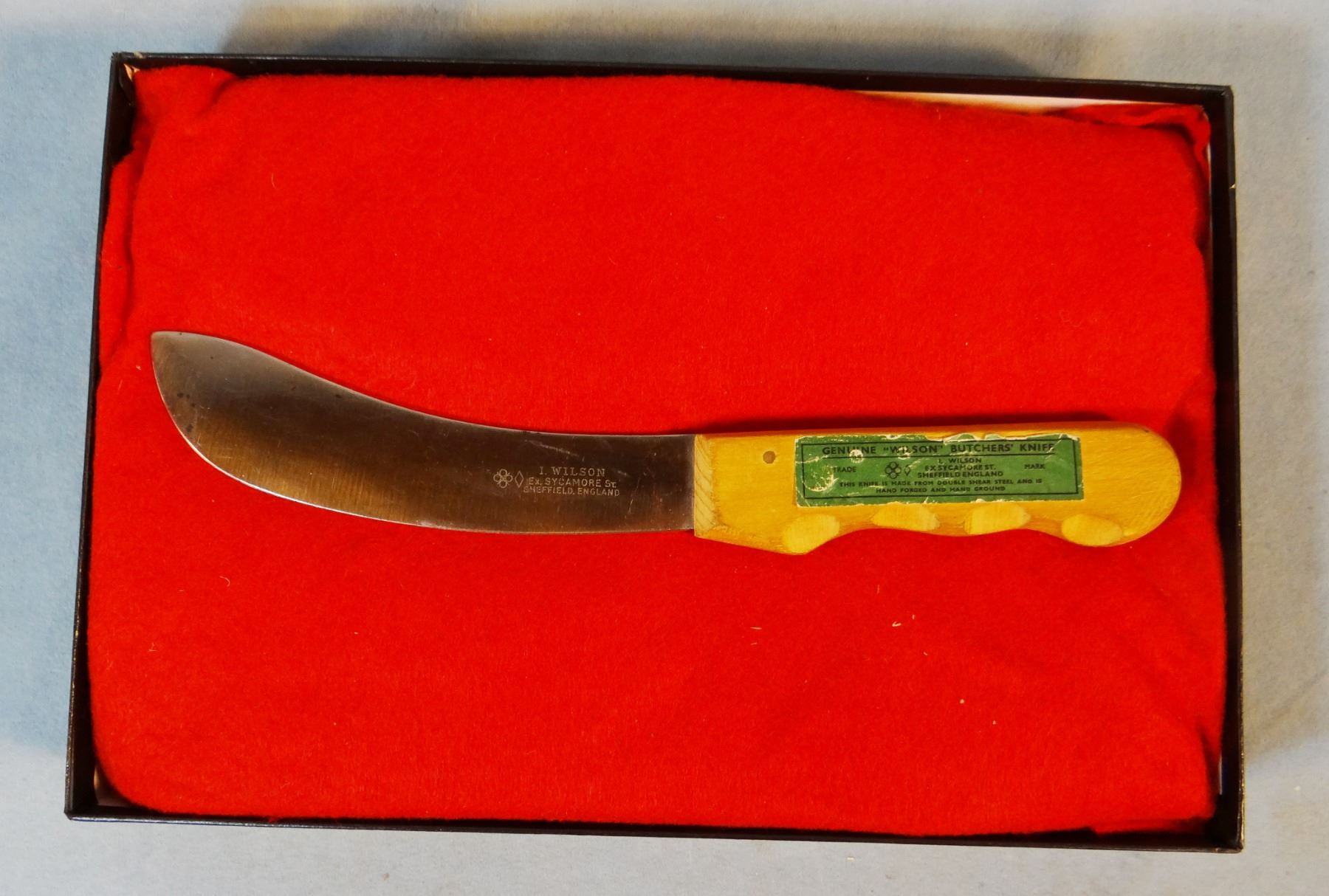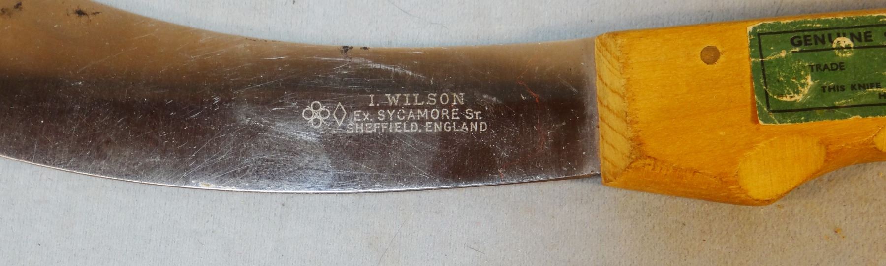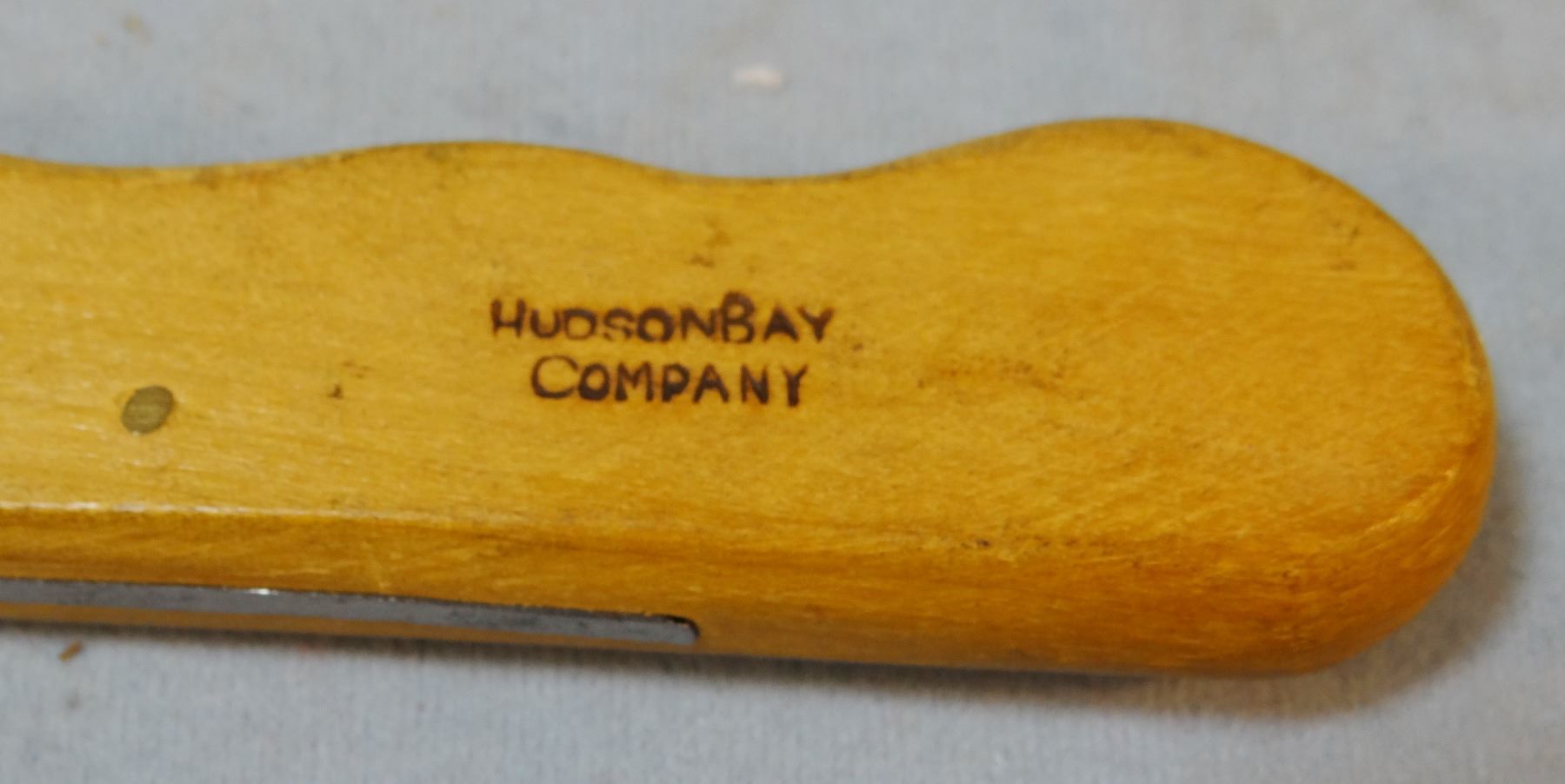 Hudson Bay Company trade knife, all original markings, mfg. by I. Wilson, very rare to find original paper label on the handle of the knife.