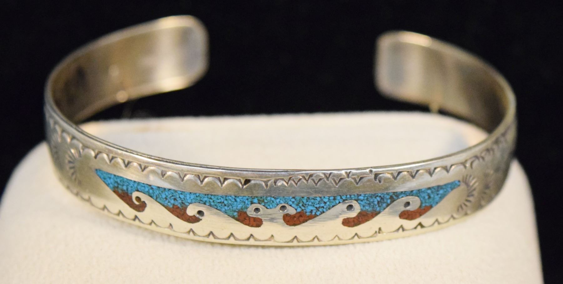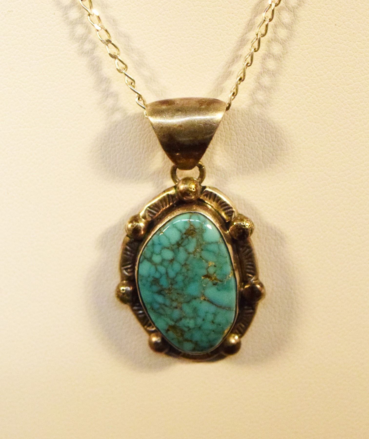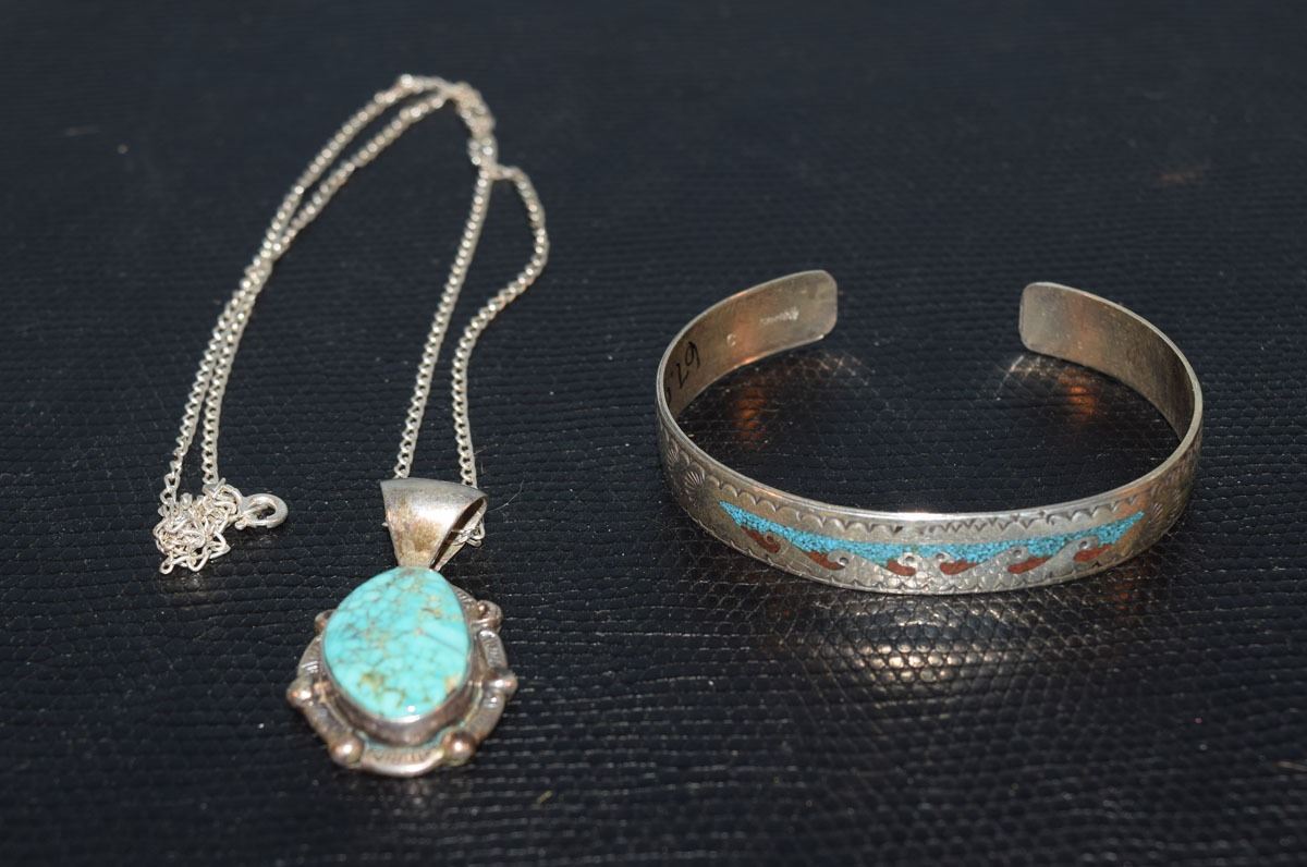 Lot 148 2 pcs: Turquoise and silver bracelet & turquoise pendant