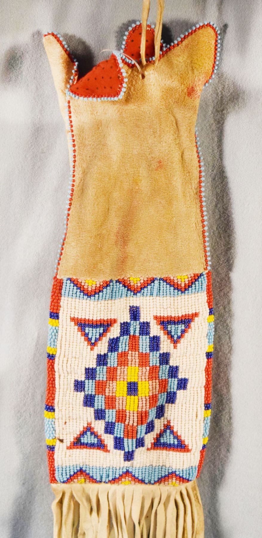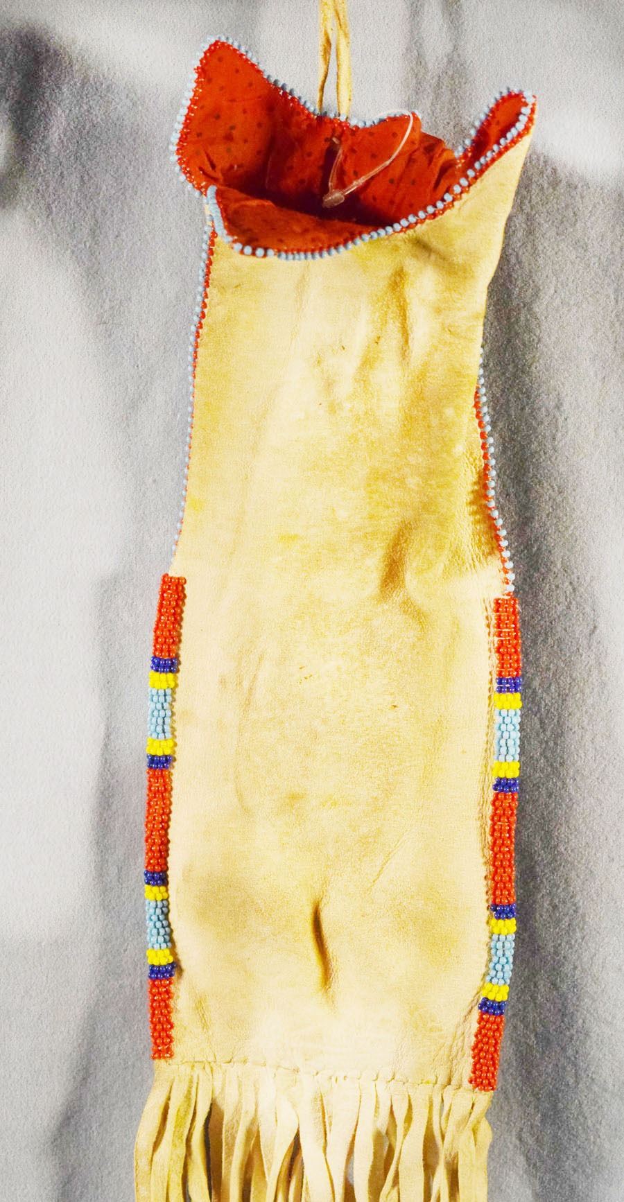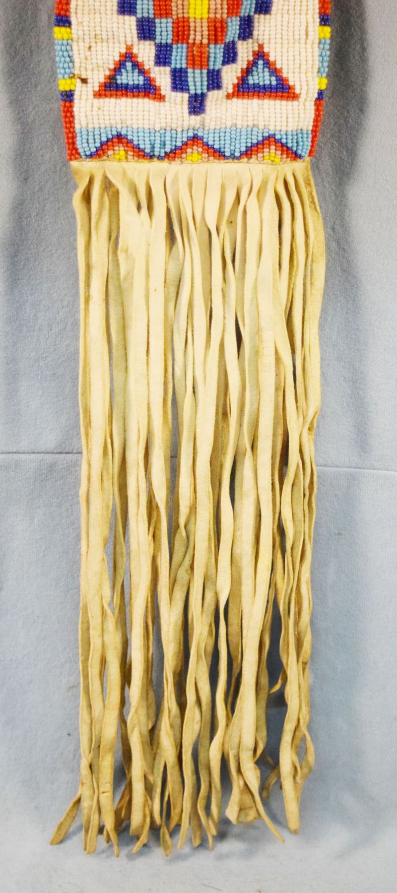 South Dakota Sioux beaded pouch, 12" x 4" with 12" fringe