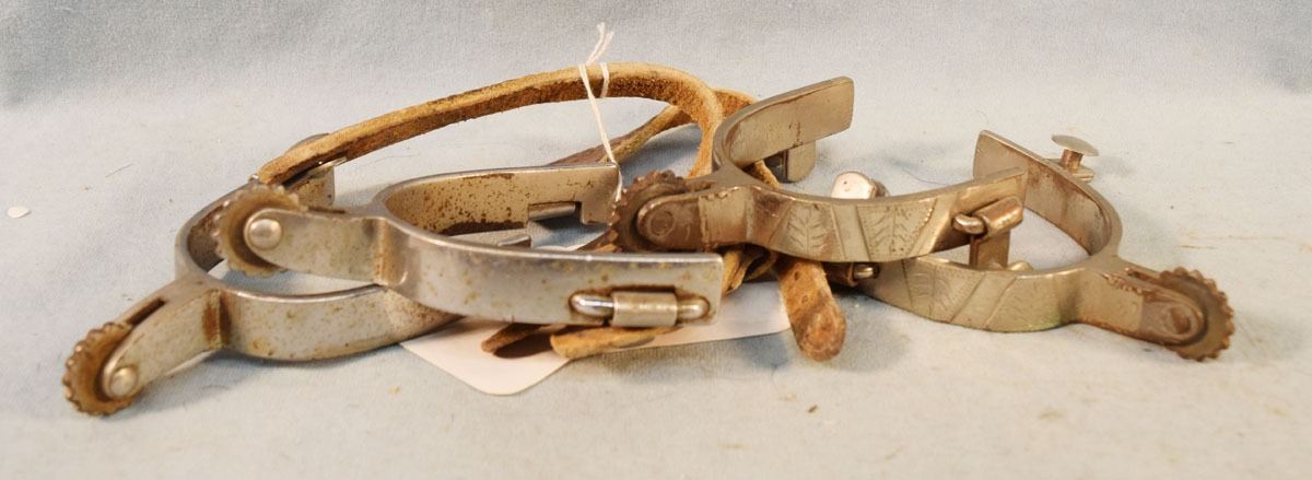 Lot 219 2 items: Crockett silver mounted spurs & Crockett Renalde spurs