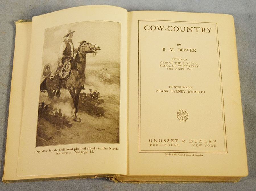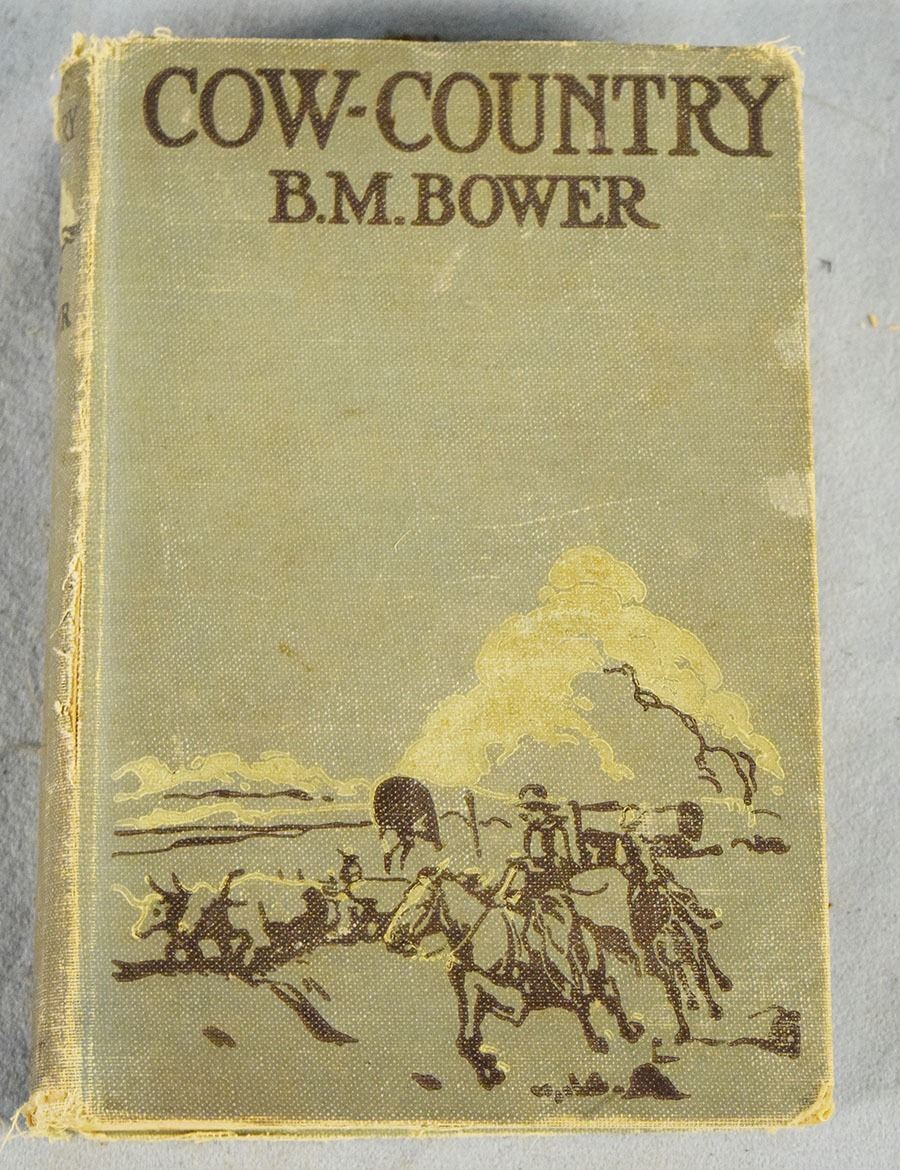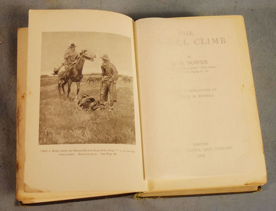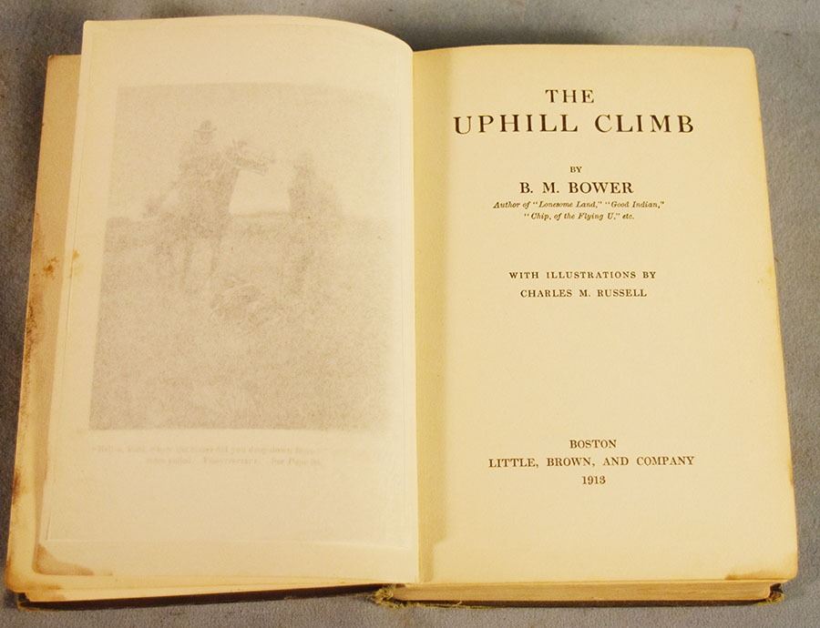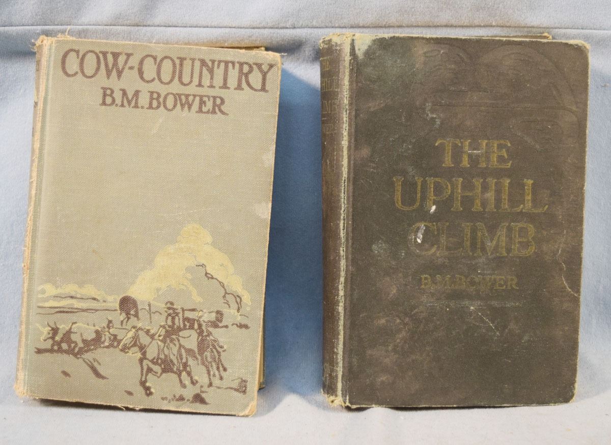 2 books by B.M. Bower: The Uphill Climb, ©1913, illus. by C. M. Russell, broken binding & Cow-Country, ©1921