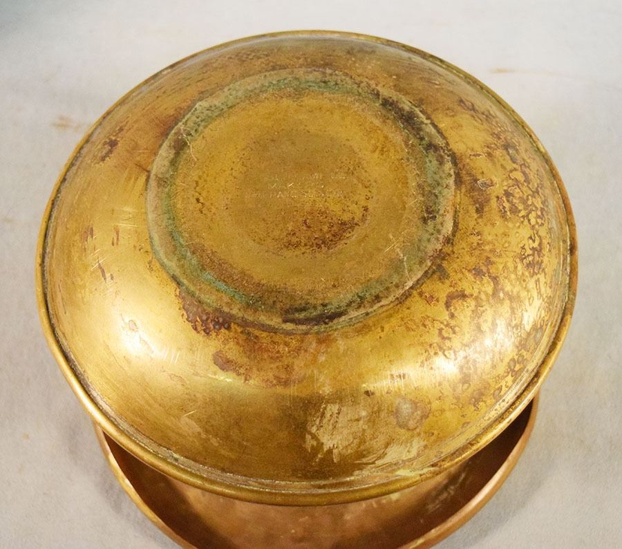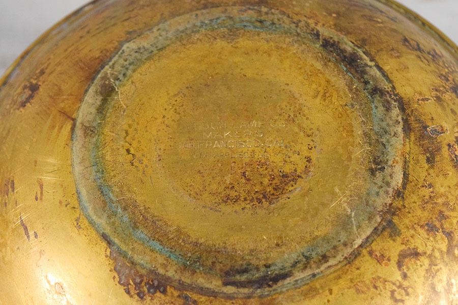 Boesch Lamp Co., San Francisco, Cal., weighted brass spittoon, 7" tall, 10" diameter