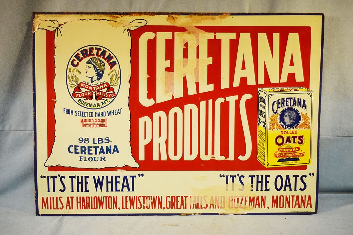 Ceretana Products tin/enamel sign, 19"x 28", rare
