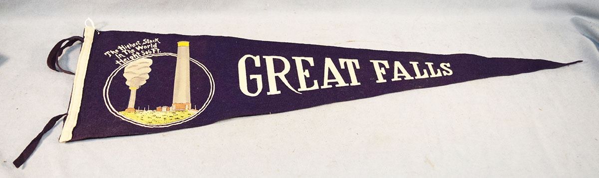 Vintage Great Falls felt pennant featuring Black Eagle Smokestack