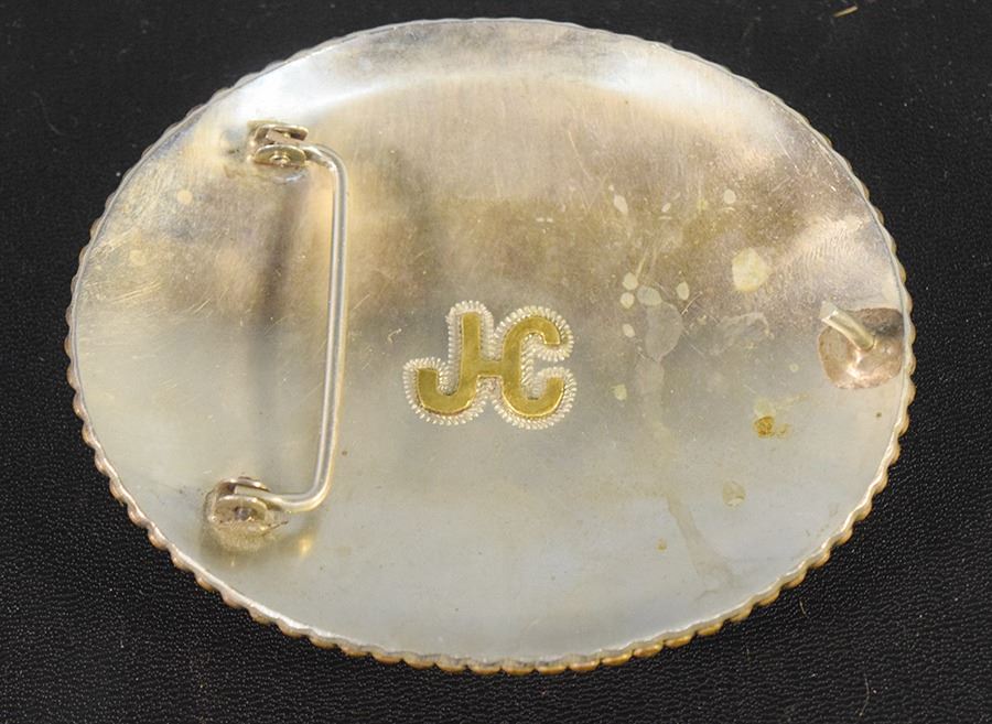 1986 Pot of Gold Roping trophy belt buckle, 10k gold, initials inside, J-C