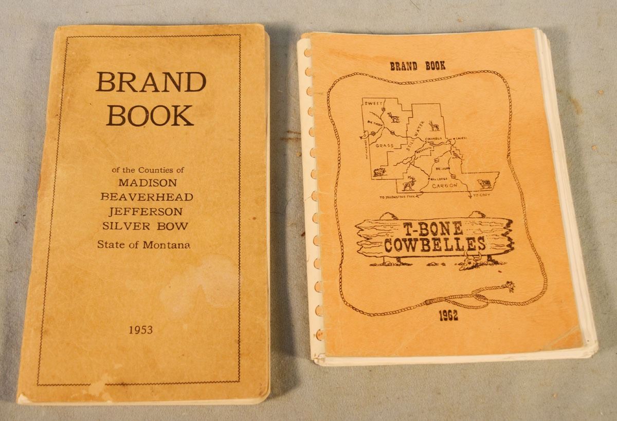 2 books: 1953 Brand Book, covers Madison, Beaverhead, Jefferson & Silver Bow Counties & 1962 T-Bone Cowbelles Brand Book, covers Stillwater, Sweet Grass and Carbon, all Montana Counties
