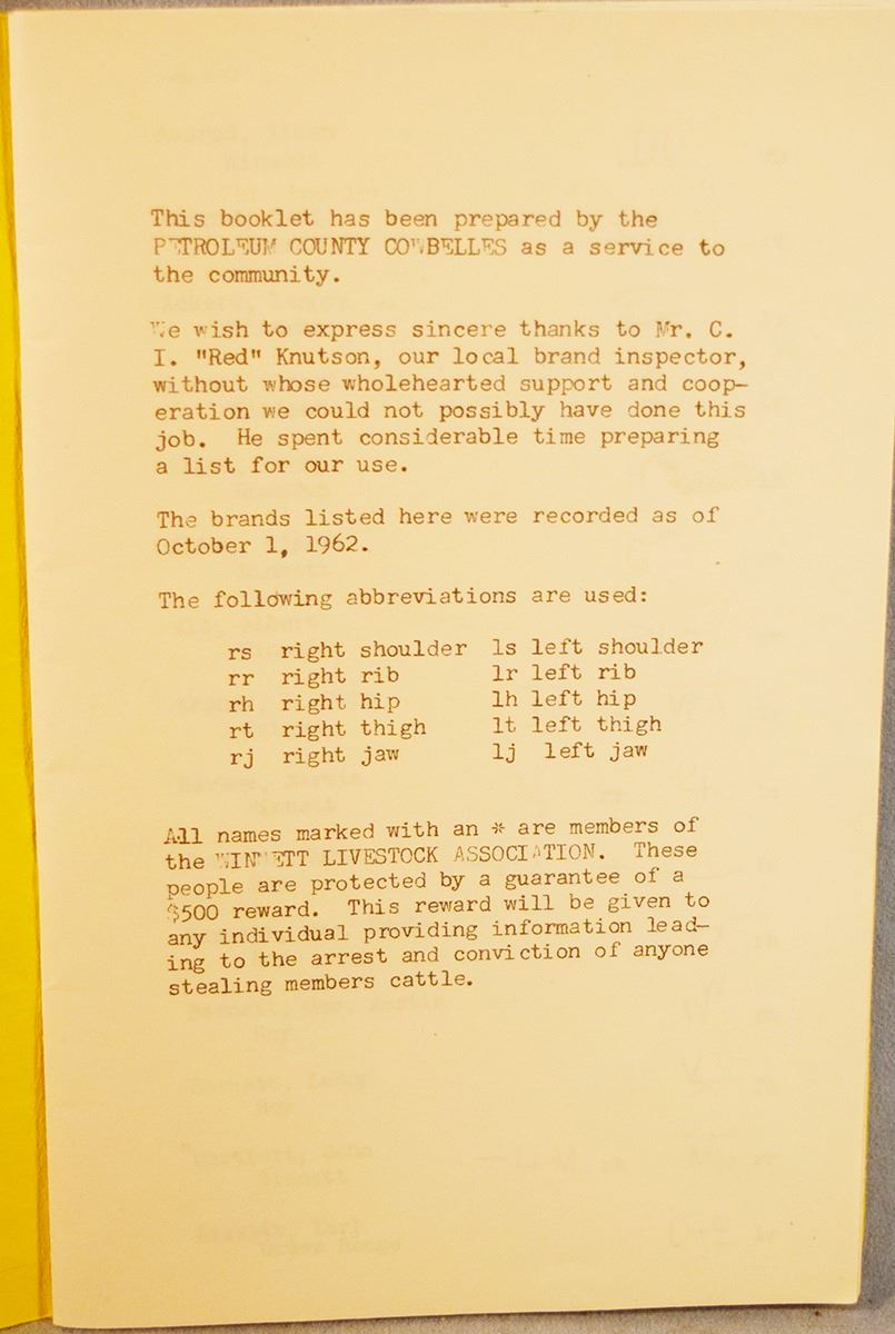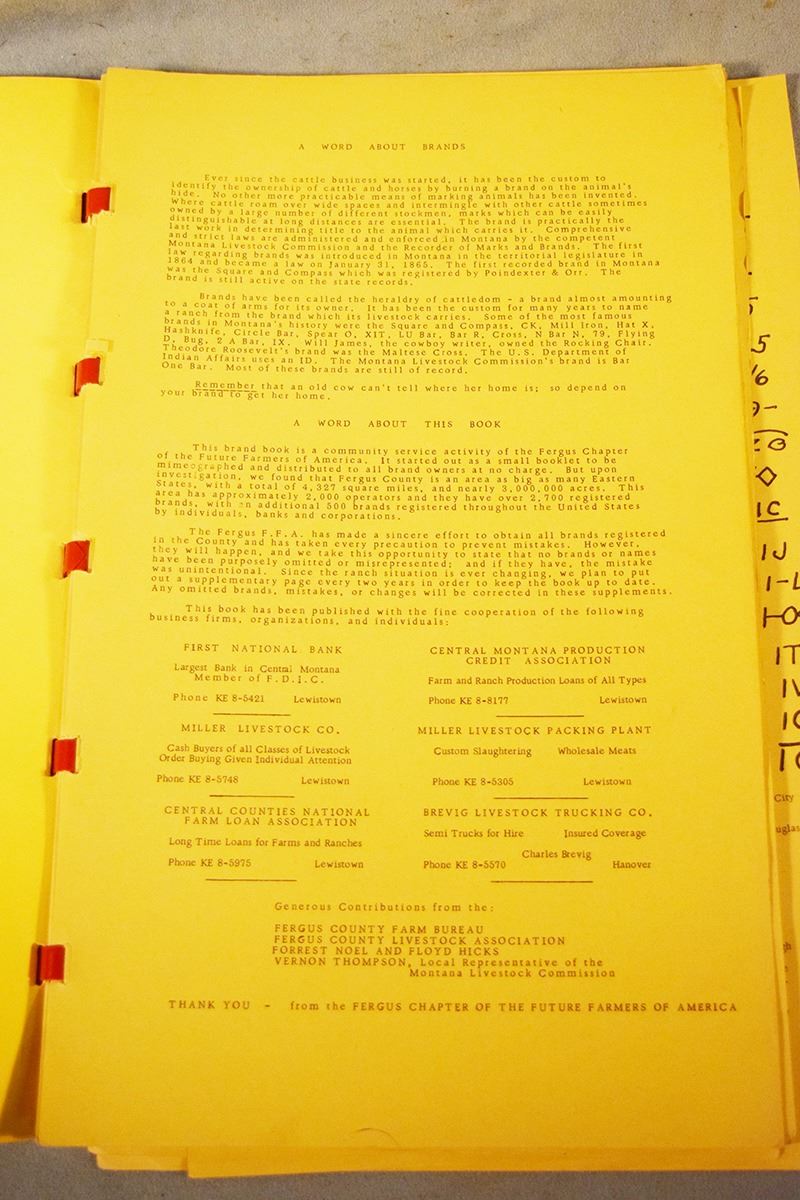 3 books: Brands of Fergus County, edited by the Fergus Chapter Future Farmers of America and (2) Petroleum County Brands, published by Petroleum County Cowbells
