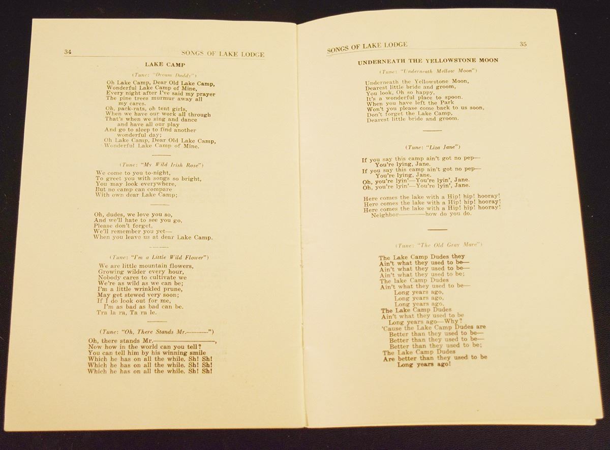 Lot 277 Songs of Yellowstone Park Camps campfire songbook