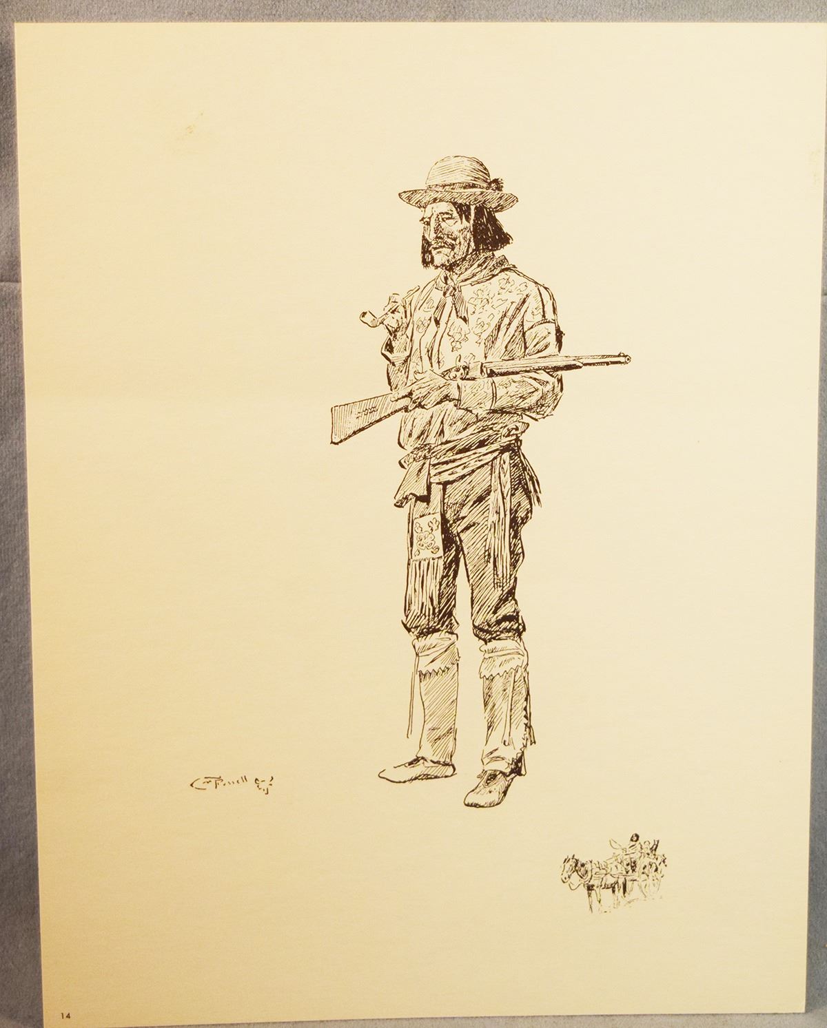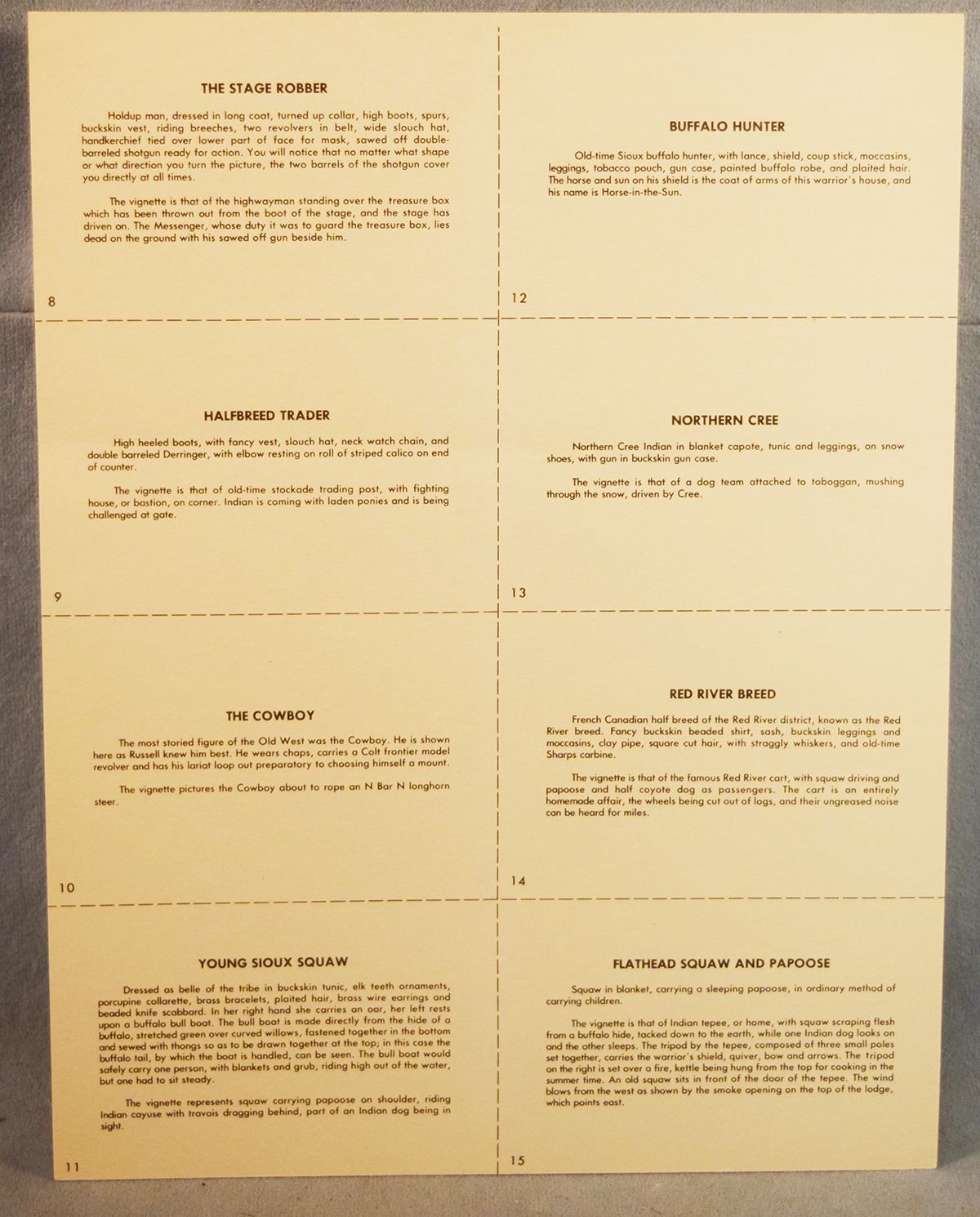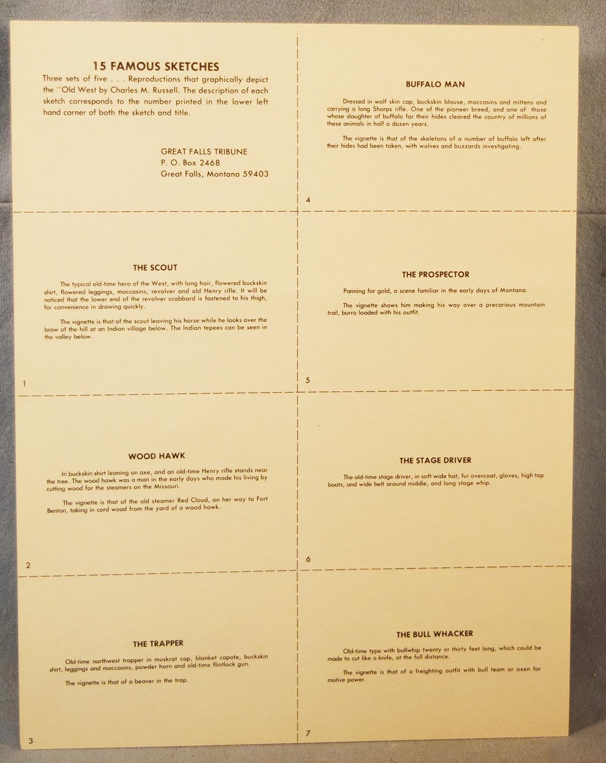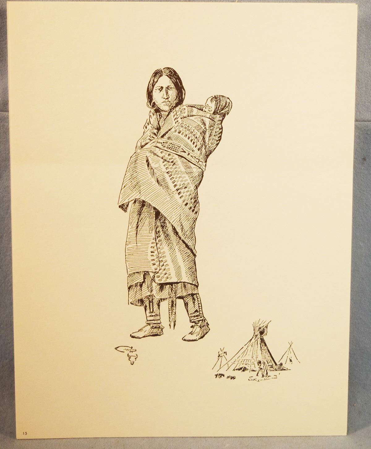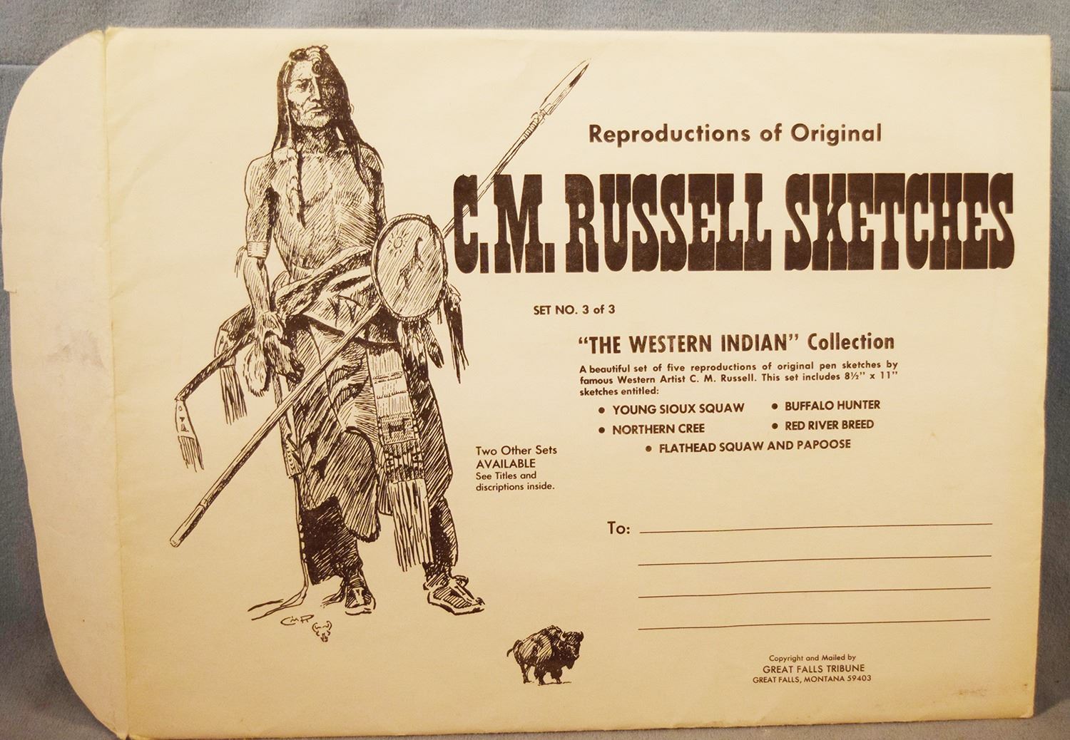 (5) C. M. Russell sketches, Western Indian Collection, 11" x 8.5", published by the Great Falls Tribune, includes Flathead Squaw & Papoose, Red River Breed, Northern Cree, Buffalo Hunter & Young Sioux Squaw
