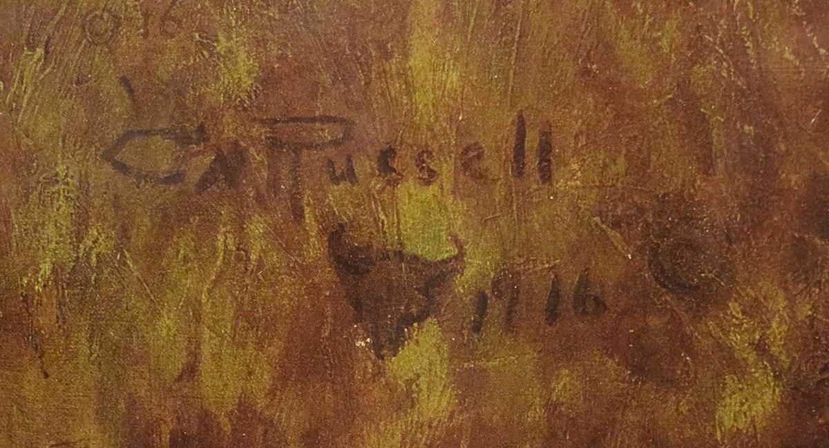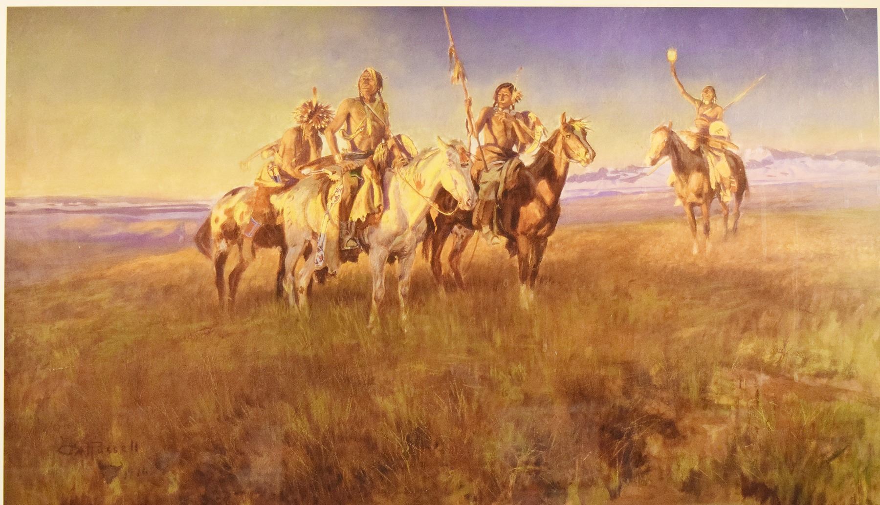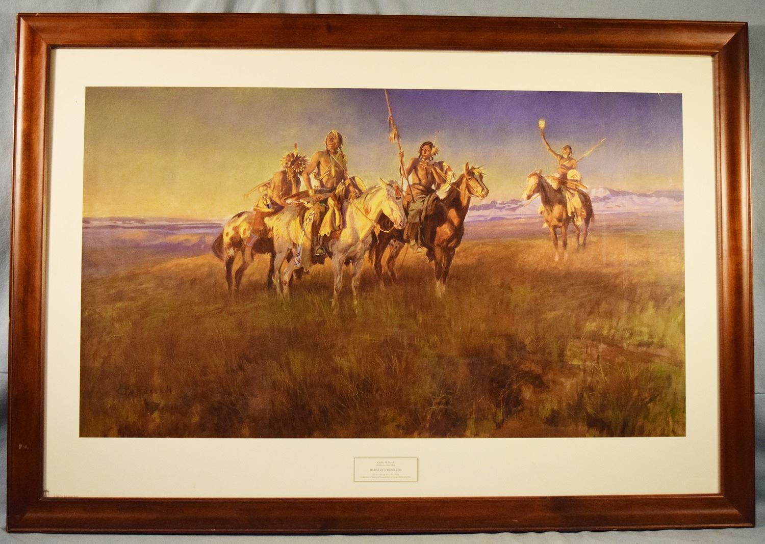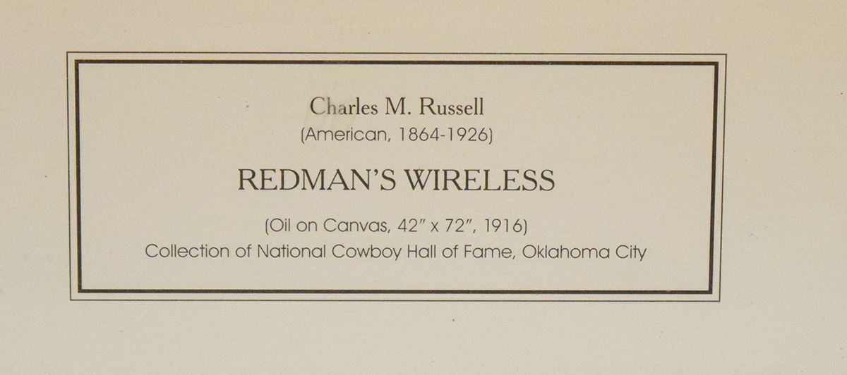 Russell, C. M., print, Red Man's Wireless, 18.5" x 32", framed