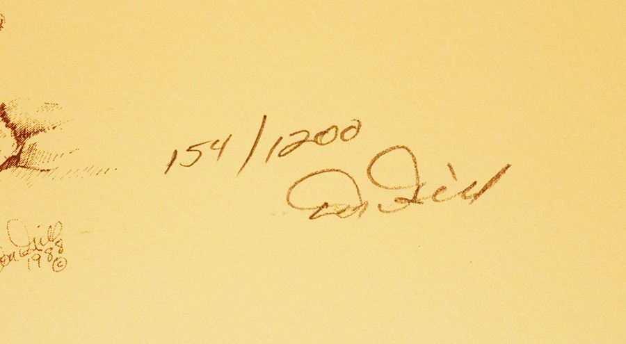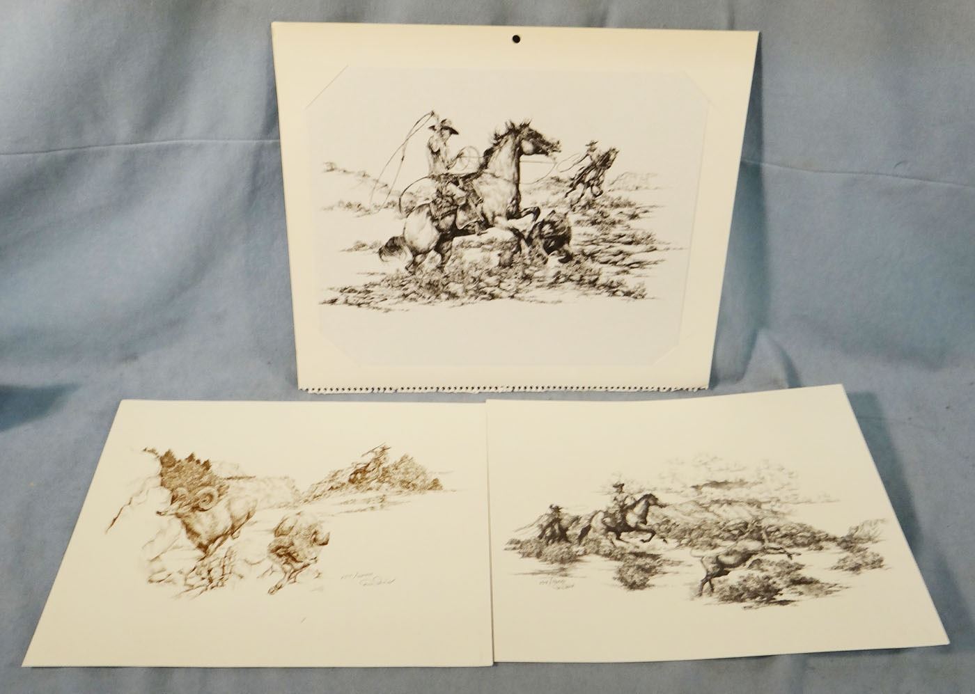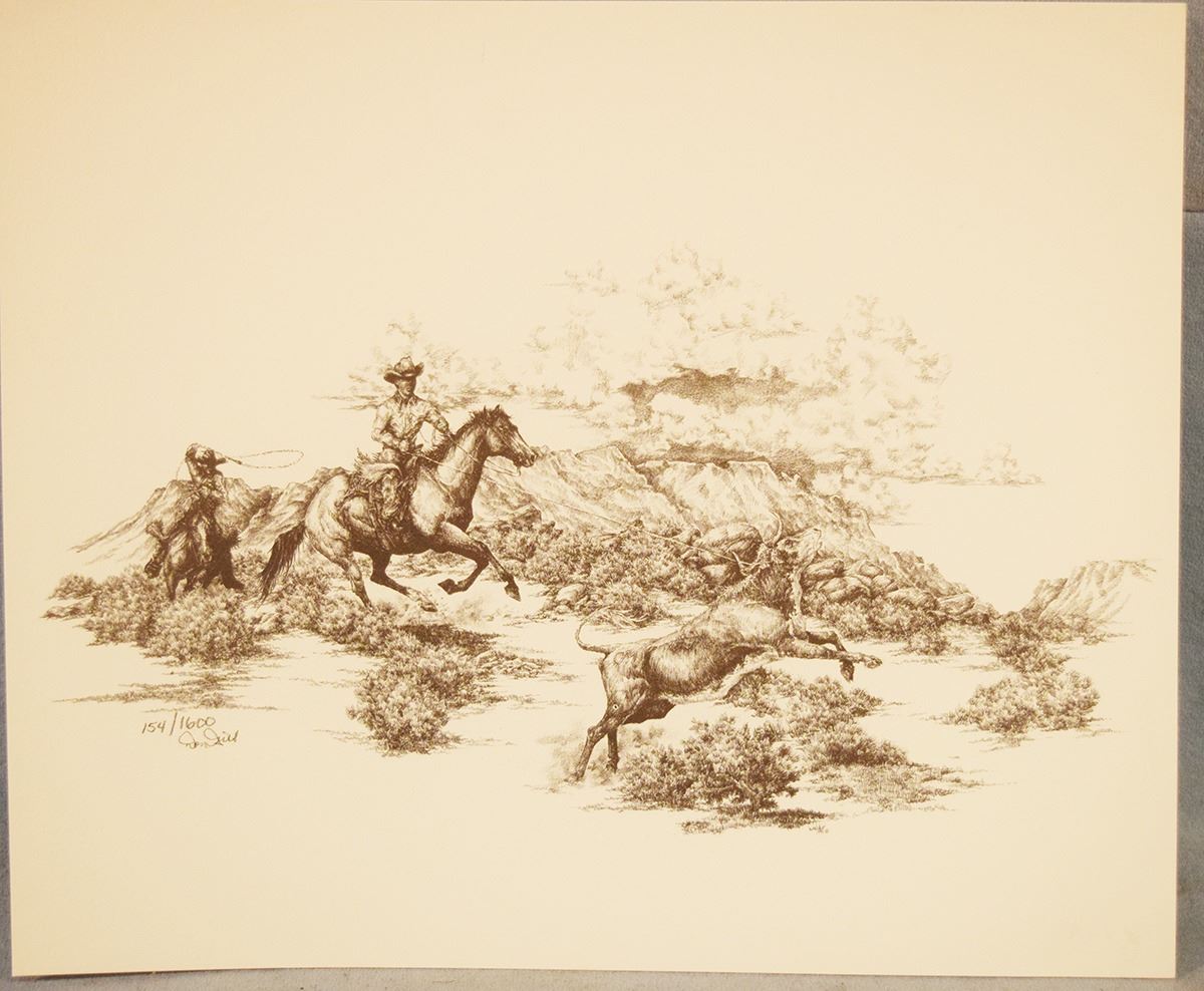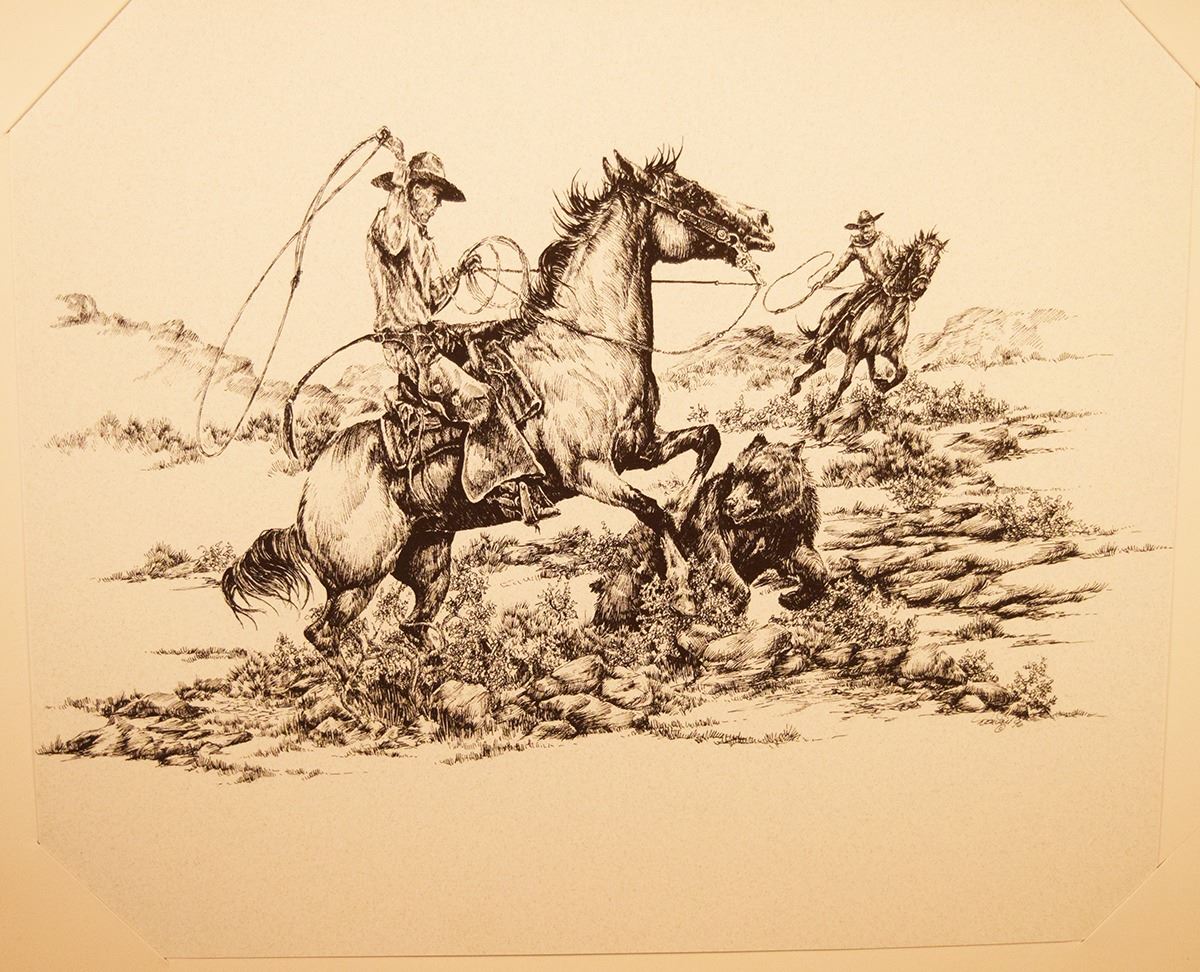 (3) Gill, Don prints: The Chase, #154/1200, 10" x 12", ; The Stray, #154/1600, 10" x 12"; Roping a Grizzly, #1996, 10" x 12", both signed lower right