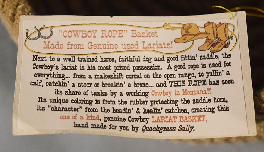 Rope basket by Quackgrass Sally, artist inducted into the MT Cowboy Hall of Fame, 9.5" diameter, 4" tall