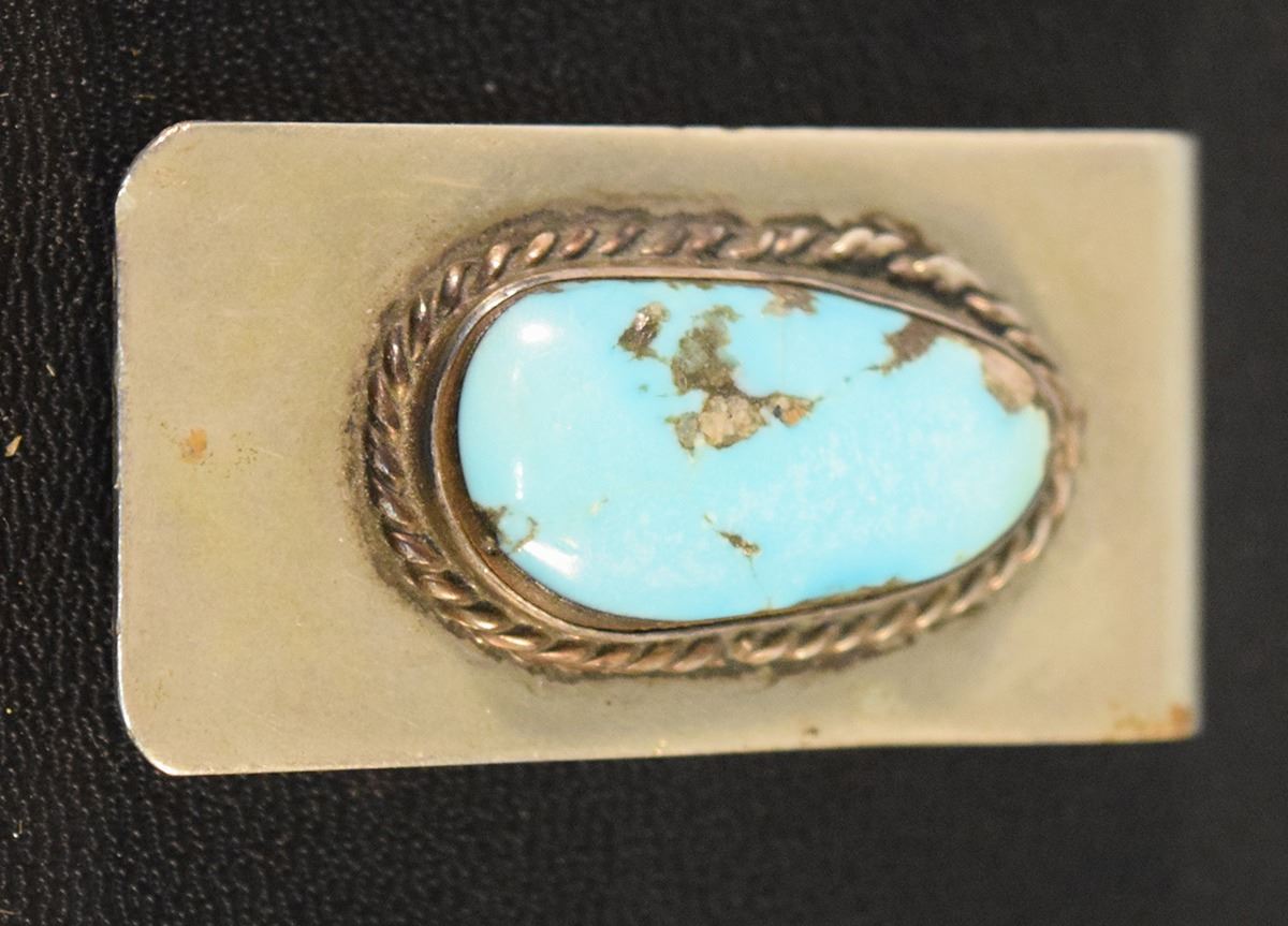 Lot 329 2 pcs: Turquoise belt buckle & money clip