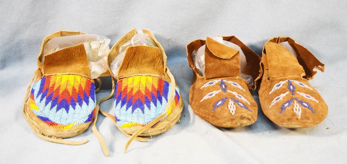 Lot 332 (2) pair of beaded moccasins