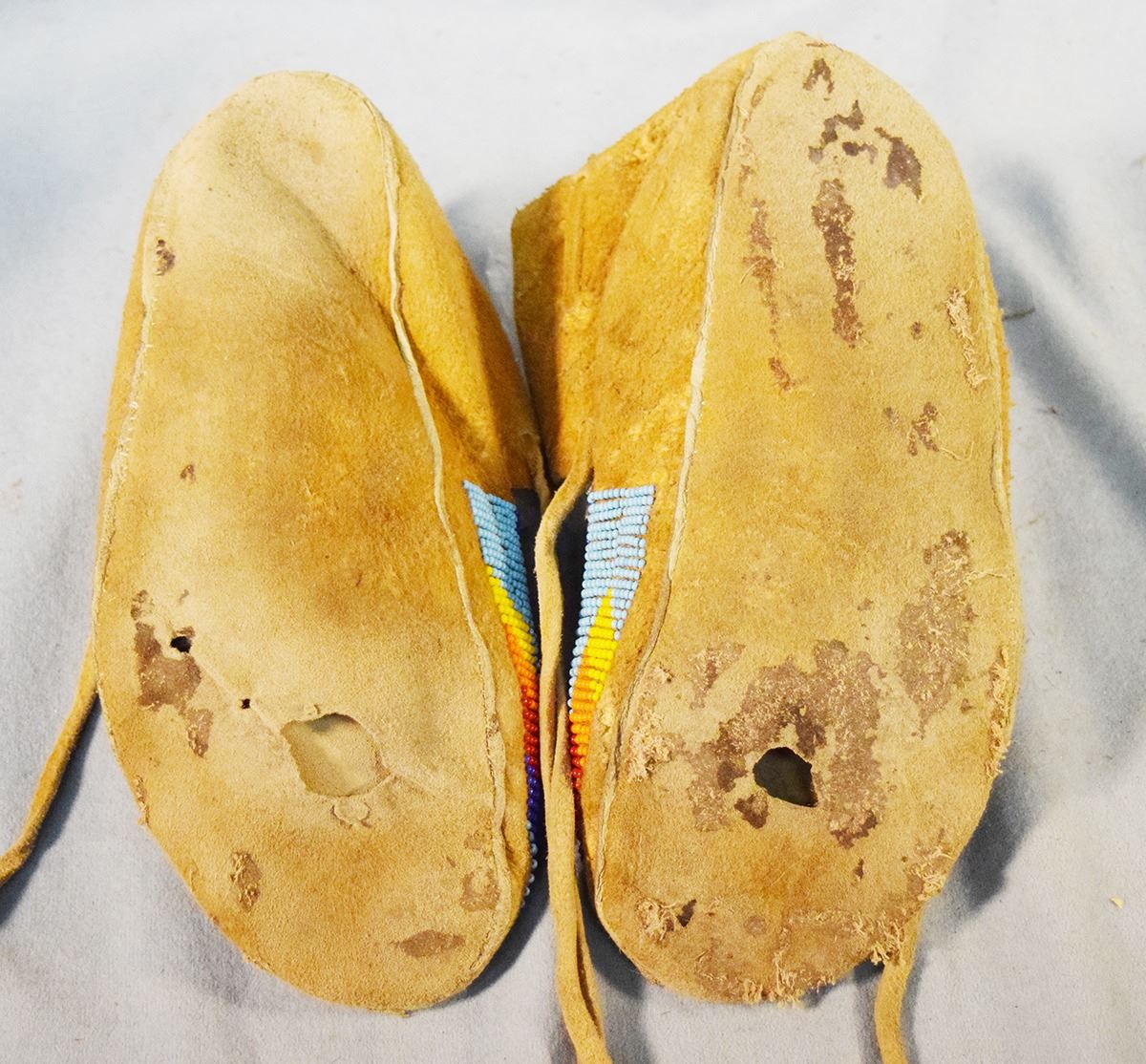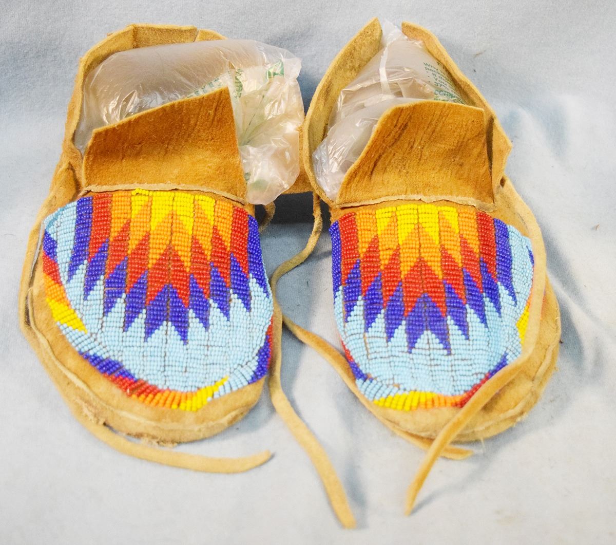 (2) pair of beaded moccasins, 9.5" & 9.5" long
