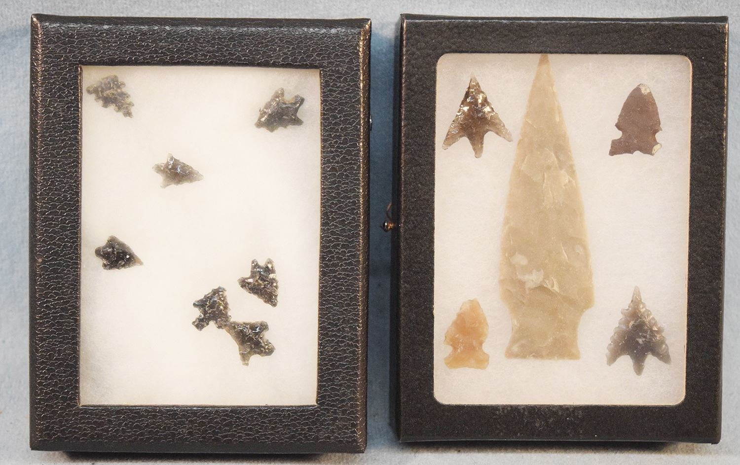 Lot 344 (2) Riker Cases: 7 obsidian points & 5 obsidian points