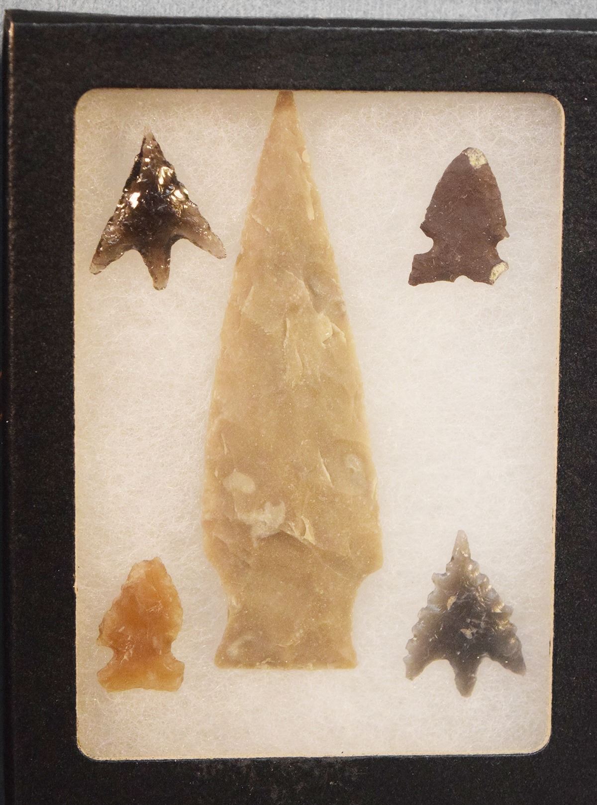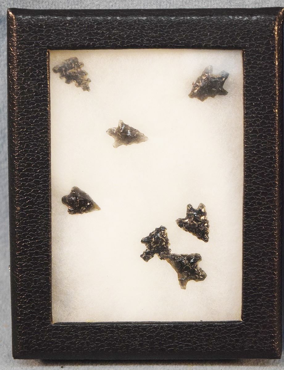 (2) Riker Cases: 7 obsidian points & 5 obsidian points