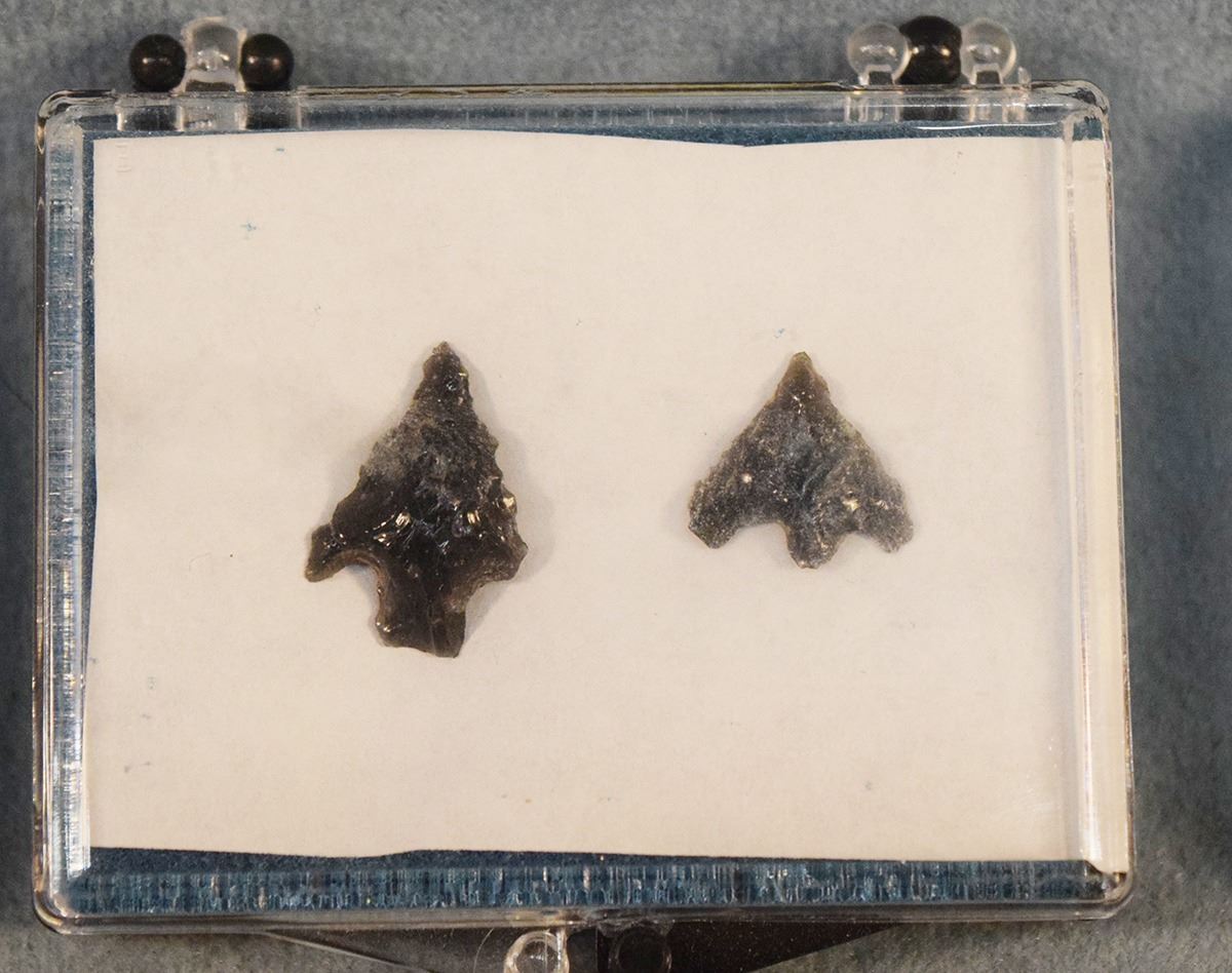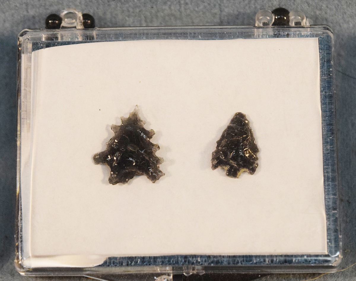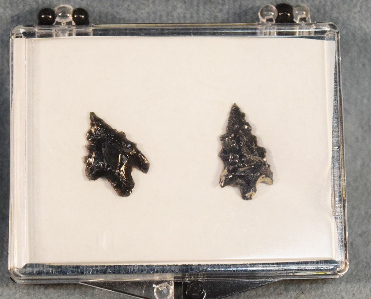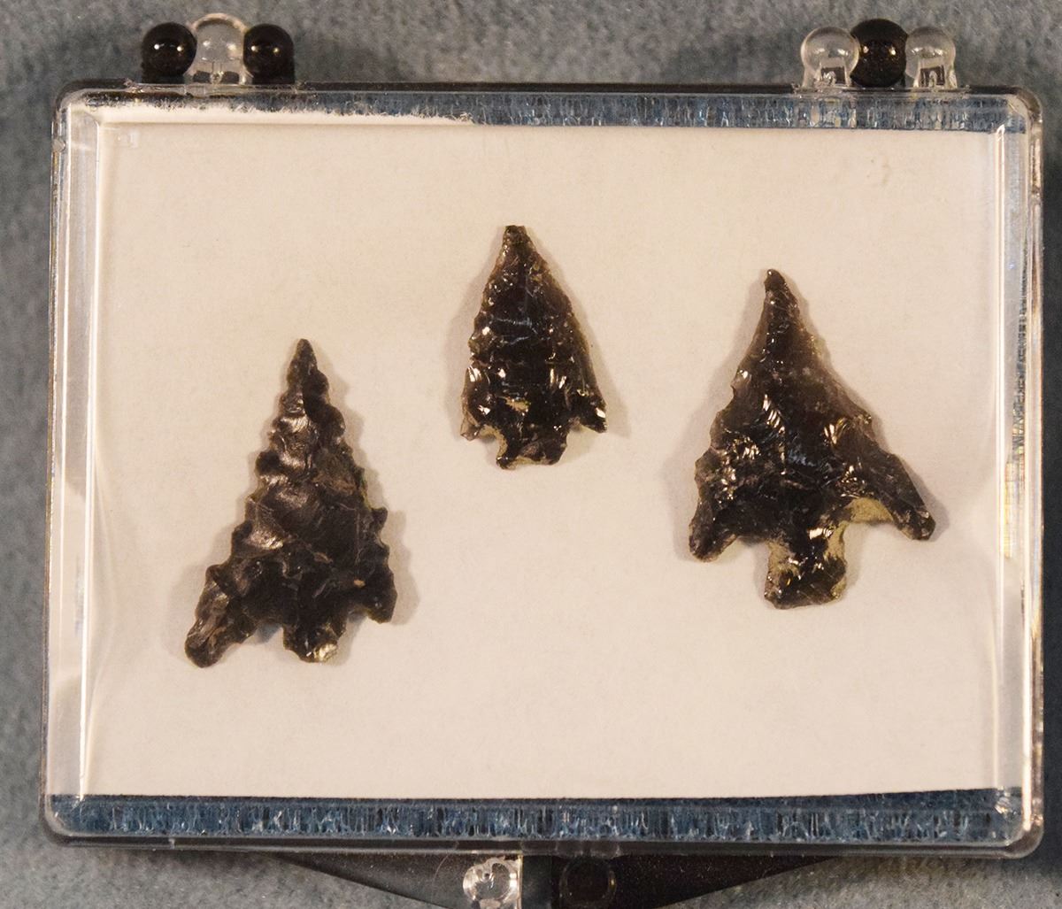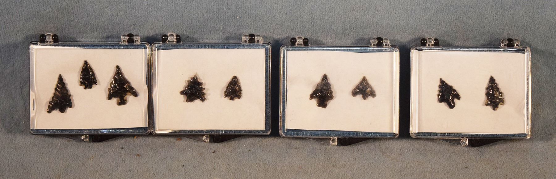 Lot 346 (4) Riker Cases: three with 2 obsidian points each & one with 3 obsidian points