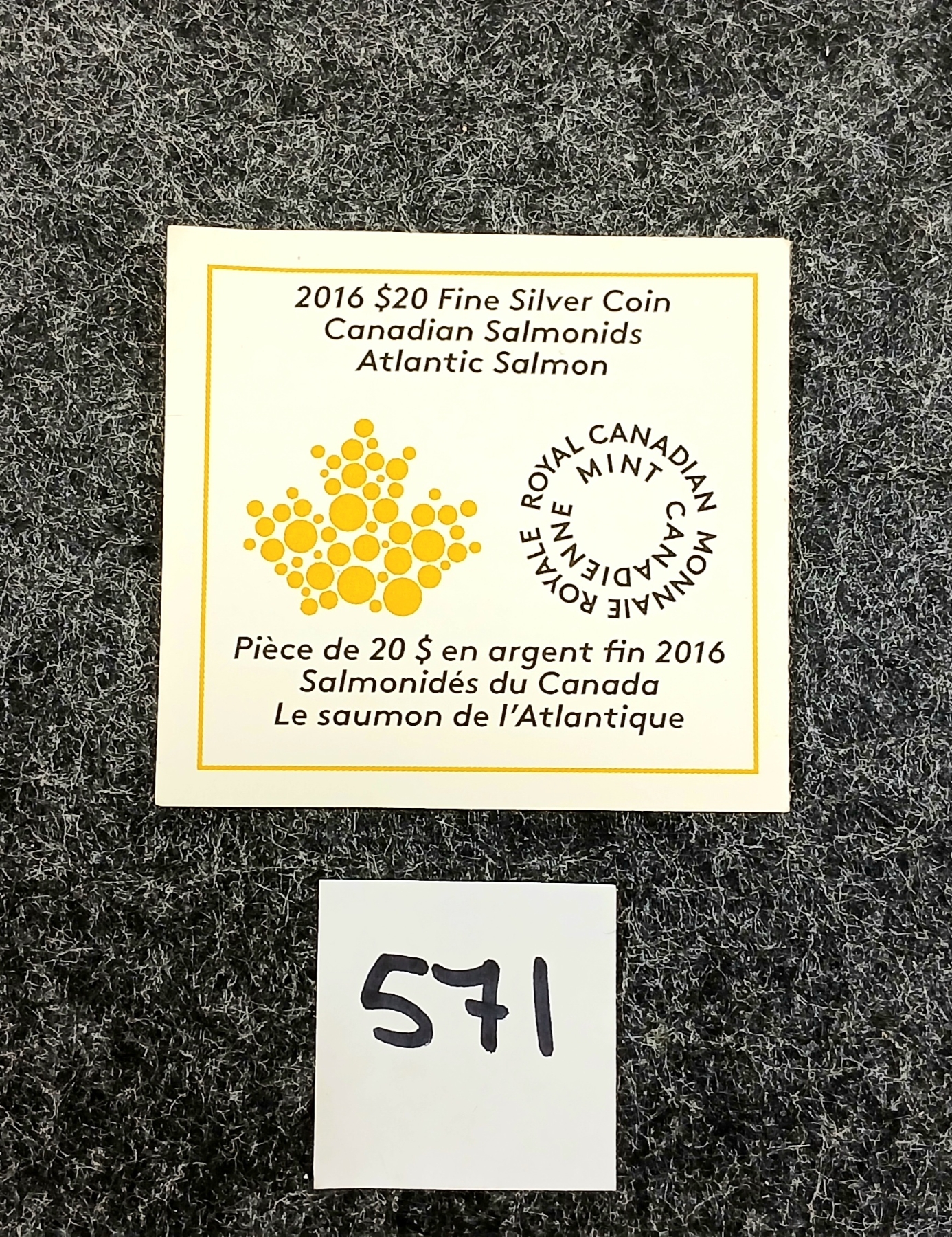 Lot 571 2016 RCM $20 FINE SILVER COIN - ATLANTIC SALMON