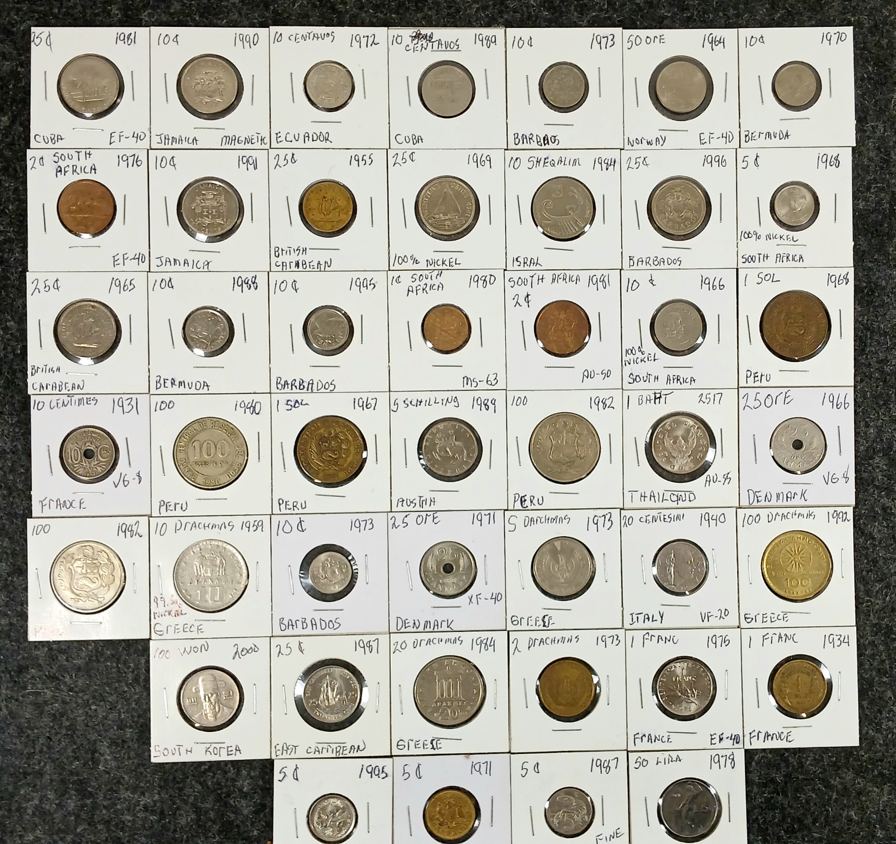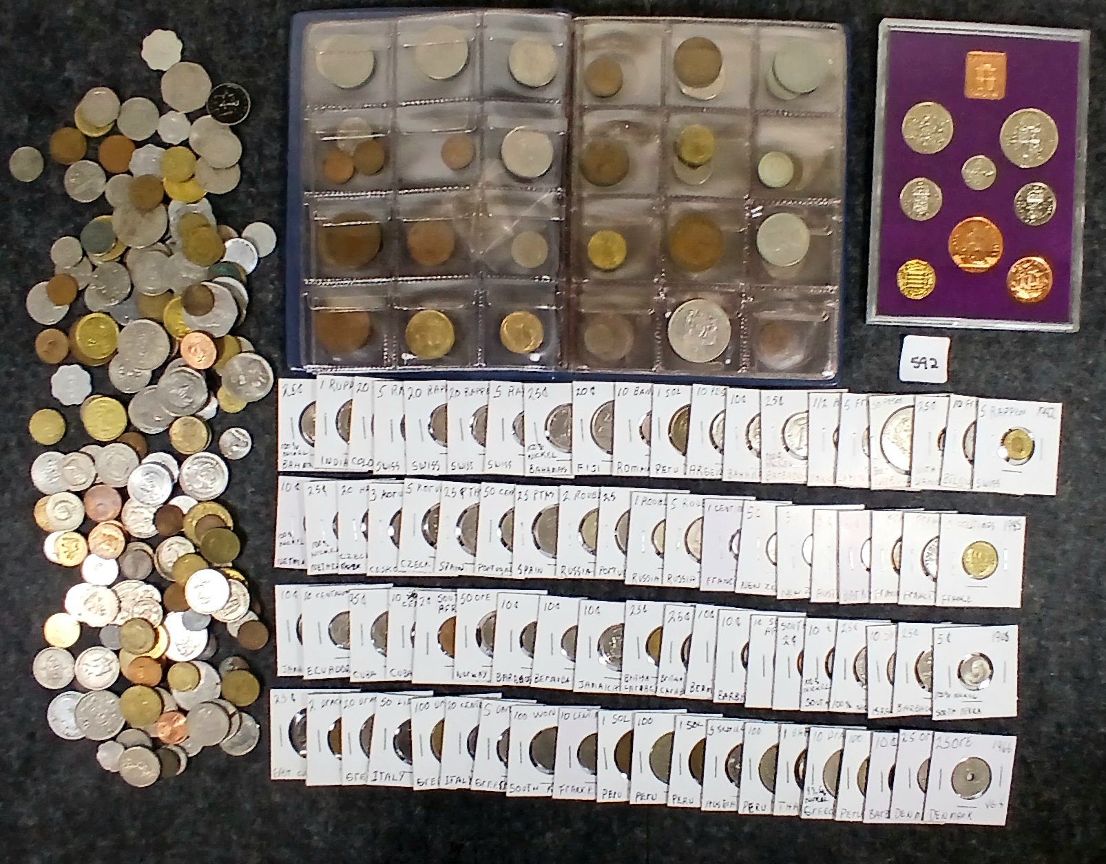 Lot 592 QTY OF WORLD COINS - DENMARK, PERU, SOUTH KOREAN, ETC