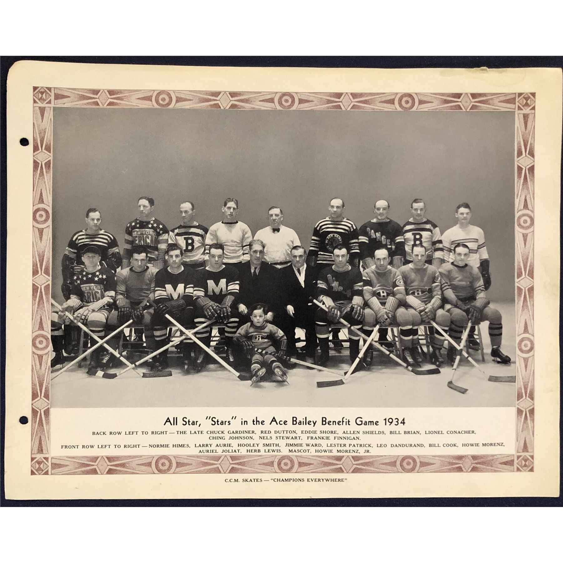 Lot 3 CCM HOCKEY TEAM PICTURE 1934 ACE BAILEY BENEFIT GAME