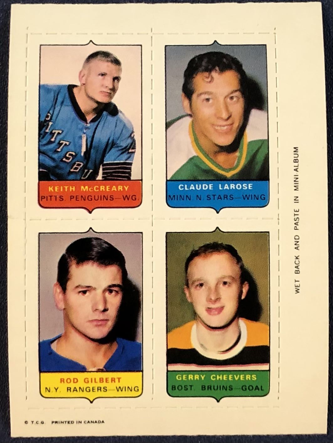 Lot 17 1969 O-PEE-CHEE HOCKEY 4-IN-1 GERRY CHEEVERS (HOF)