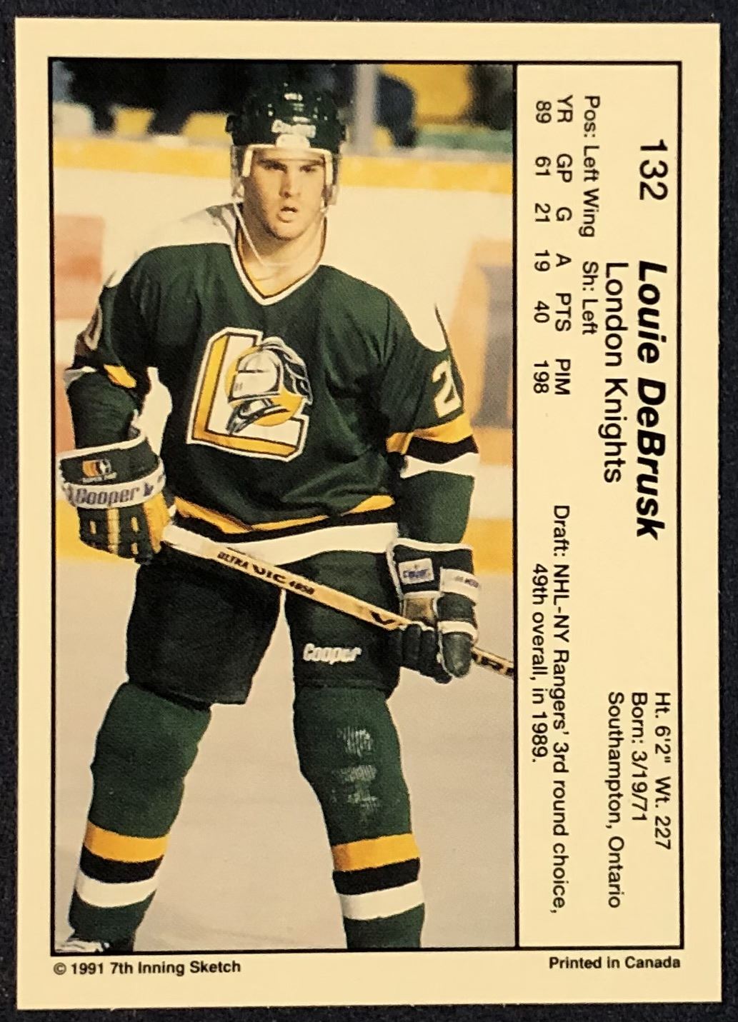 Lot 24 1990-91 7th INNING SKETCH LOUIE DEBRUSK JUNIOR CARD