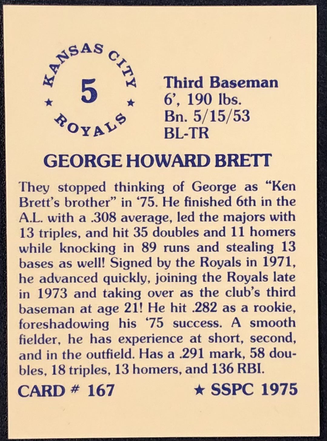 Lot 27 1975 SSPC BASEBALL GEORGE BRETT (HOF)