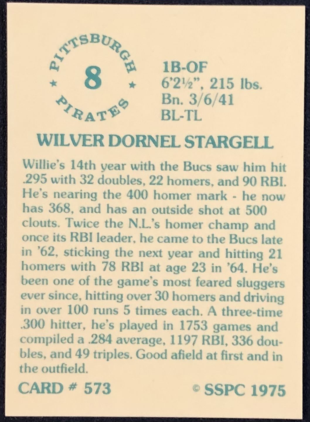 Lot 32 1975 SSPC BASEBALL WILLIE STARGELL (HOF)