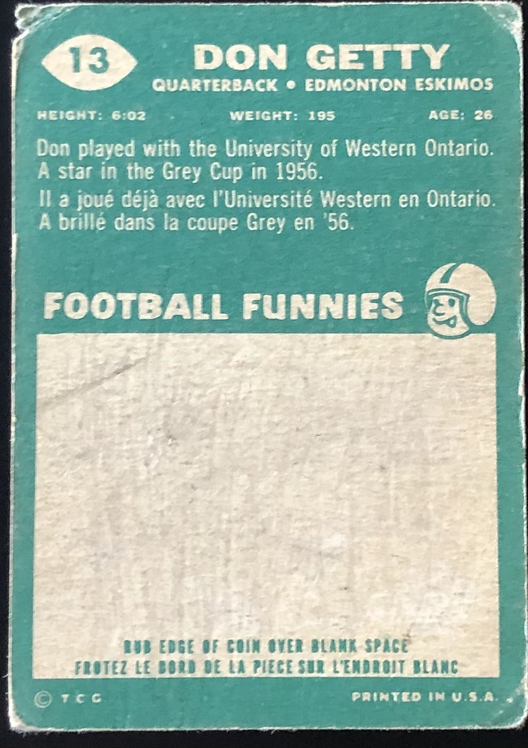 Lot 41 1960 O-PEE-CHEE CFL DON GETTY (HOF)