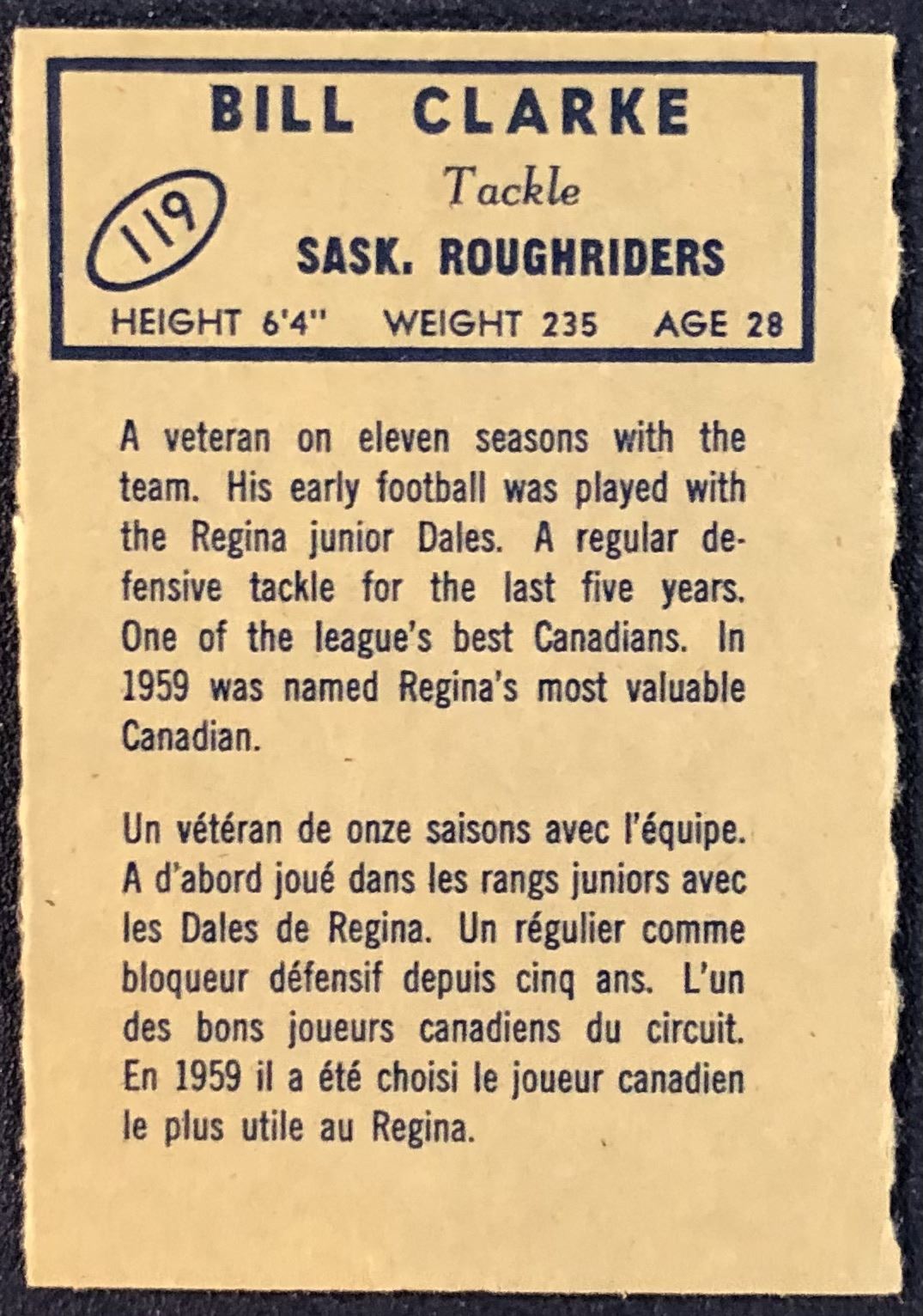 Lot 50 1962 O-PEE-CHEE CFL BILL CLARKE (HOF)