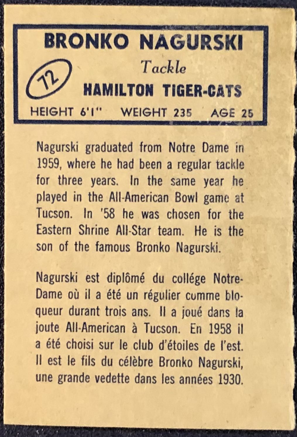 Lot 51 1962 O-PEE-CHEE CFL BRONKO NAGURSKI (HOF)