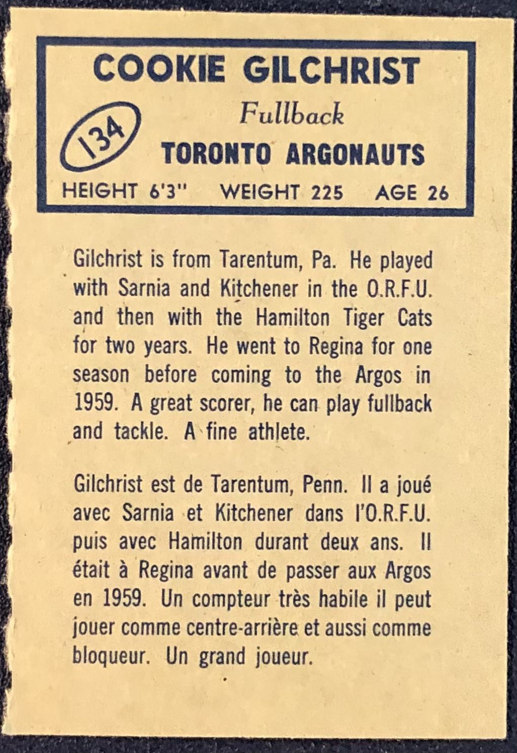 Lot 52 1962 O-PEE-CHEE CFL COOKIE GILCHRIST (HOF)