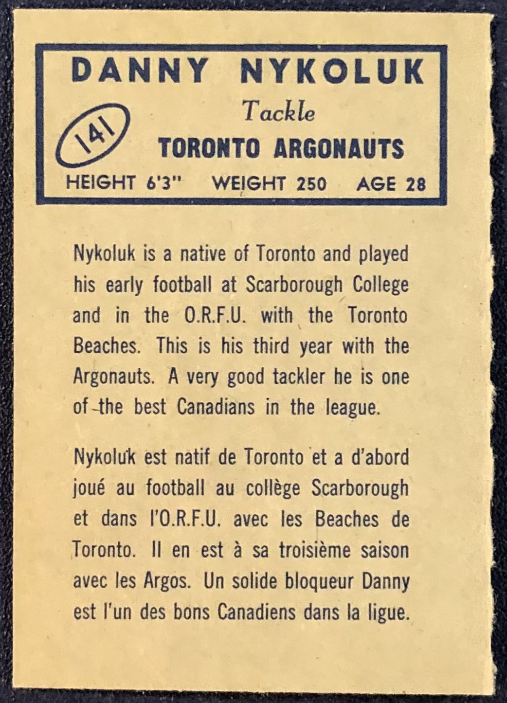 Lot 53 1962 O-PEE-CHEE CFL DANNY NYKOLUK (HOF)