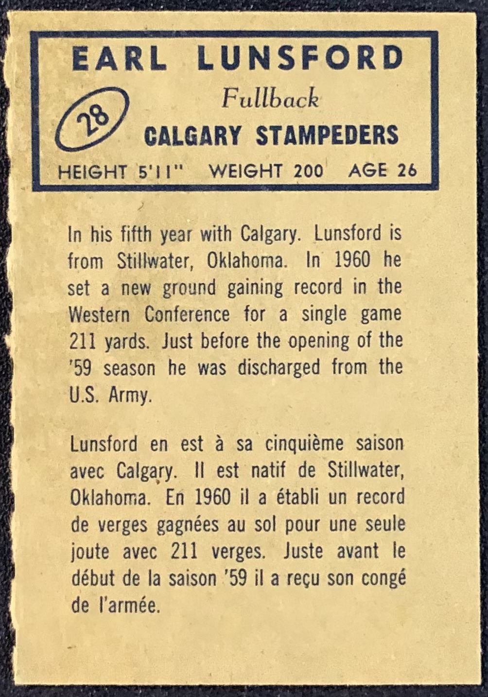 Lot 54 1962 O-PEE-CHEE CFL EARL LUNSFORD (HOF)
