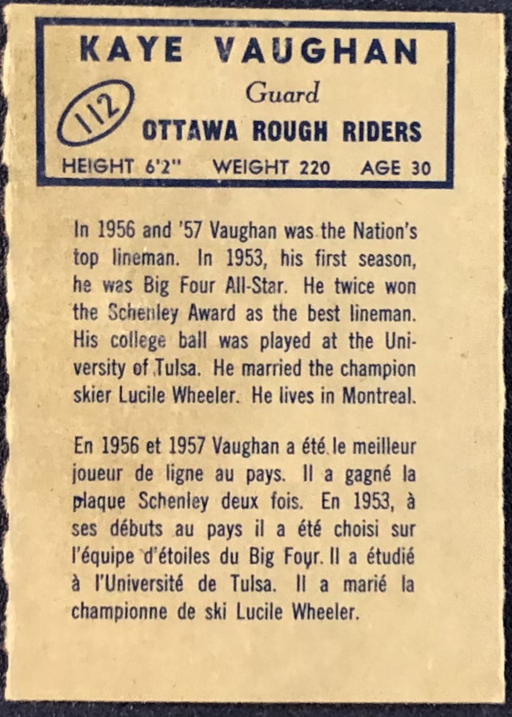 Lot 61 1962 O-PEE-CHEE CFL KAYE VAUGHN (HOF)