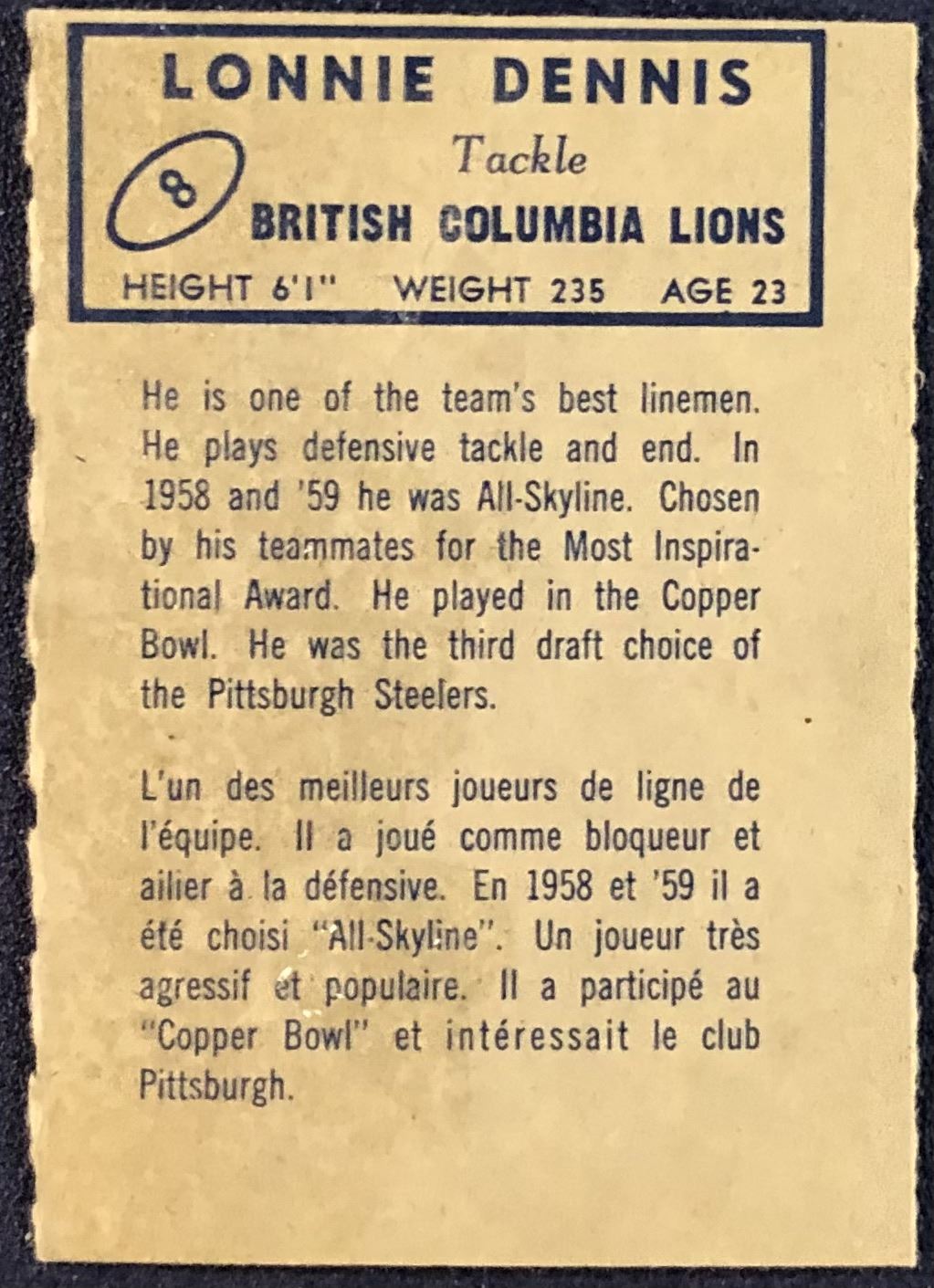 Lot 62 1962 O-PEE-CHEE CFL LONNIE DENNIS (HOF)